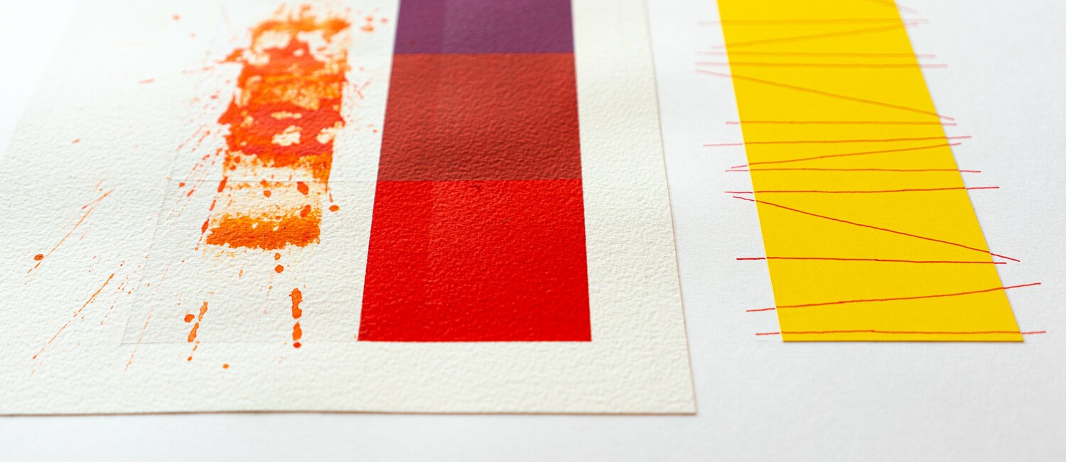 The bottom element is a trace of intense orange colors. The trace is informal but evokes the rectangles above.