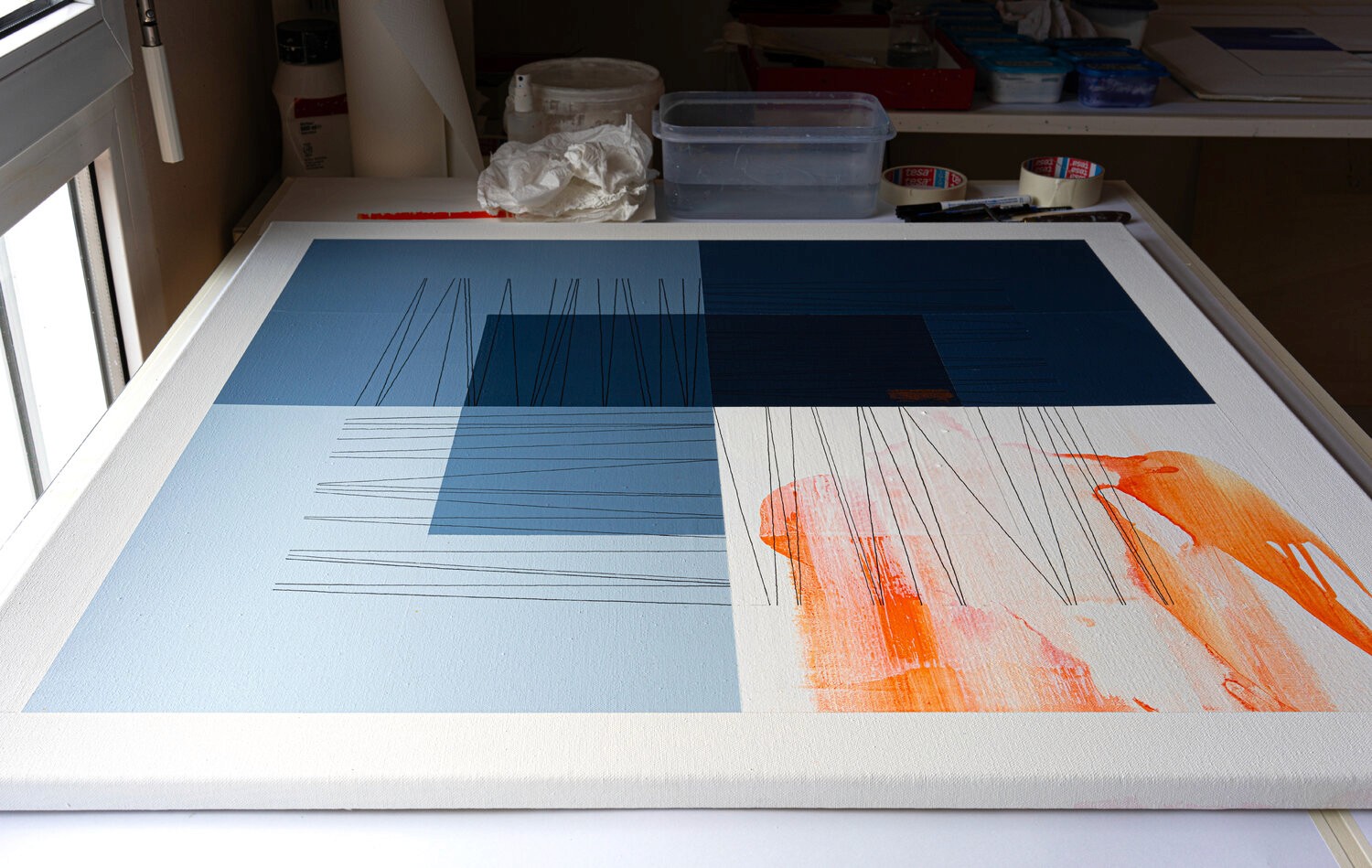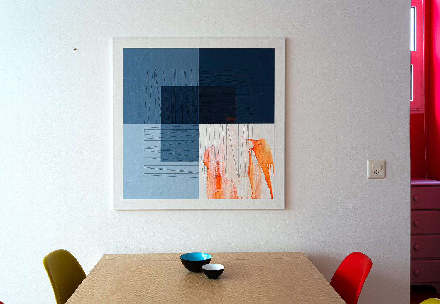 In this work; I explored the harmony between geometry and expression. The solid colors contrast with the fine lines; creating a visual dance of acrylic and Indian ink; mixing abstractions and raw emotions. Minimalist simplicity invites contemplation; inviting the energy of reflection and quietude into your space.