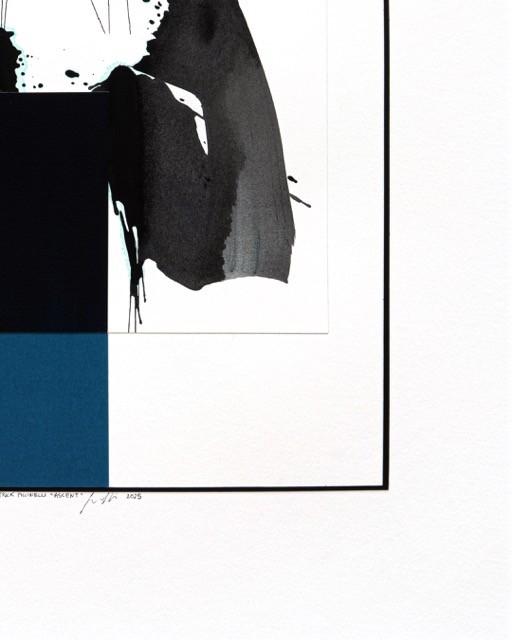 The ink stains and splatters in the center of the composition reproduce the logic of free improvisation: the gesture that starts, that overflows, that is unplanned but just right. Coltrane does not correct a misplaced note—he moves through it. I do not erase the splatter—I let it live!