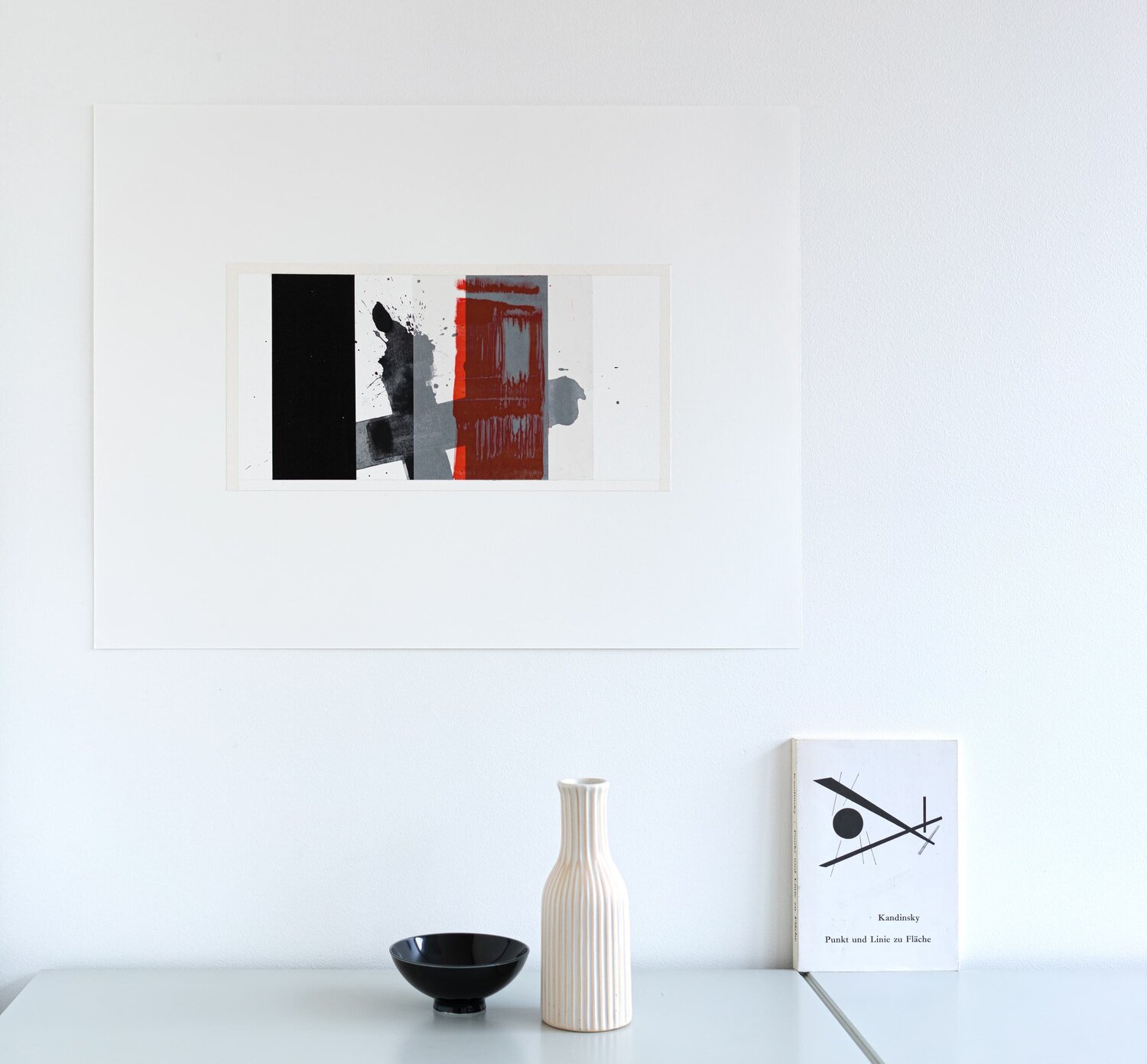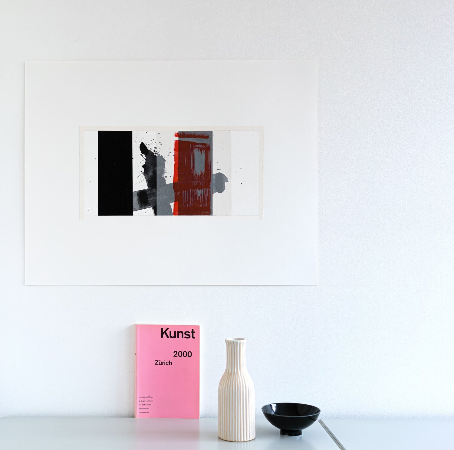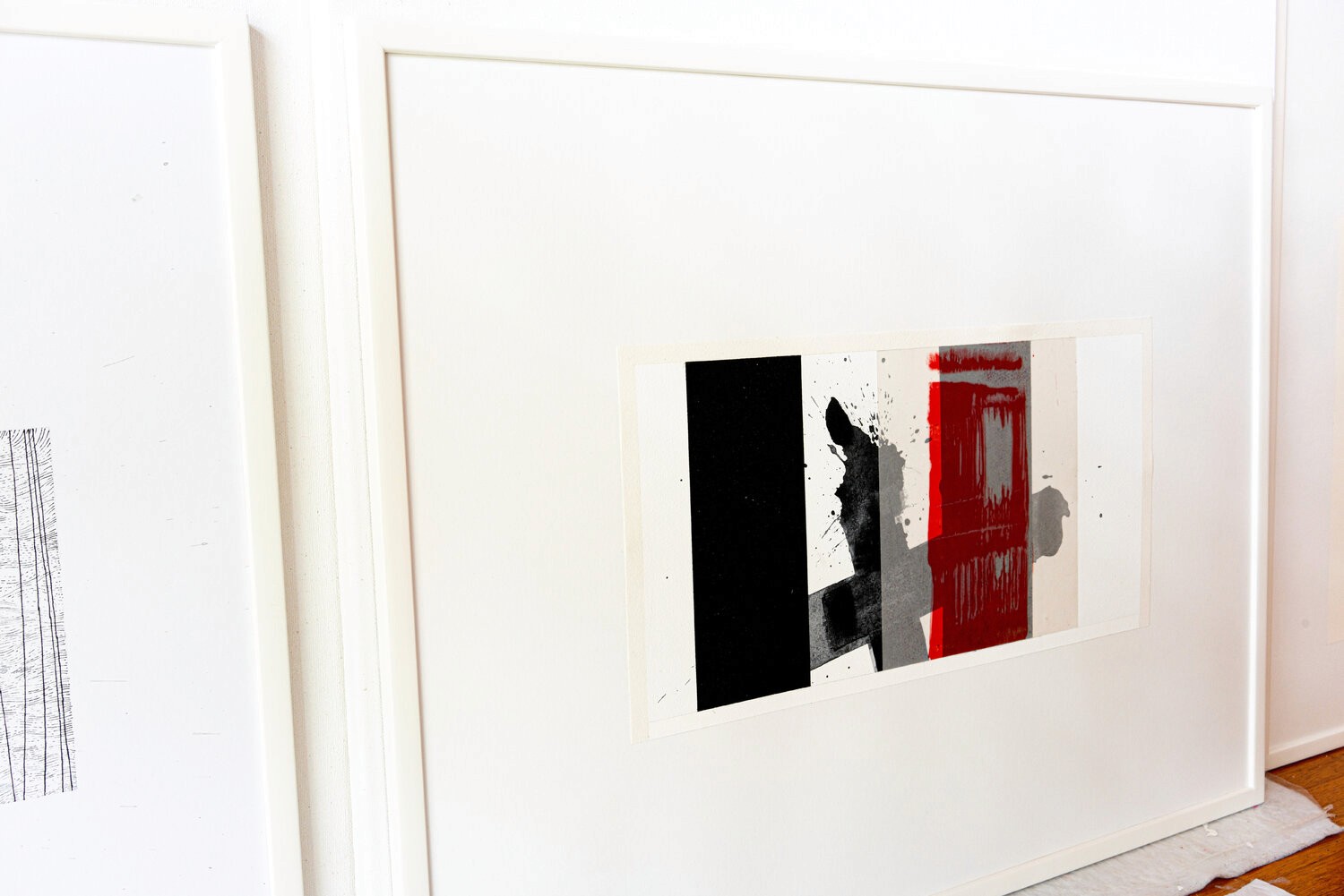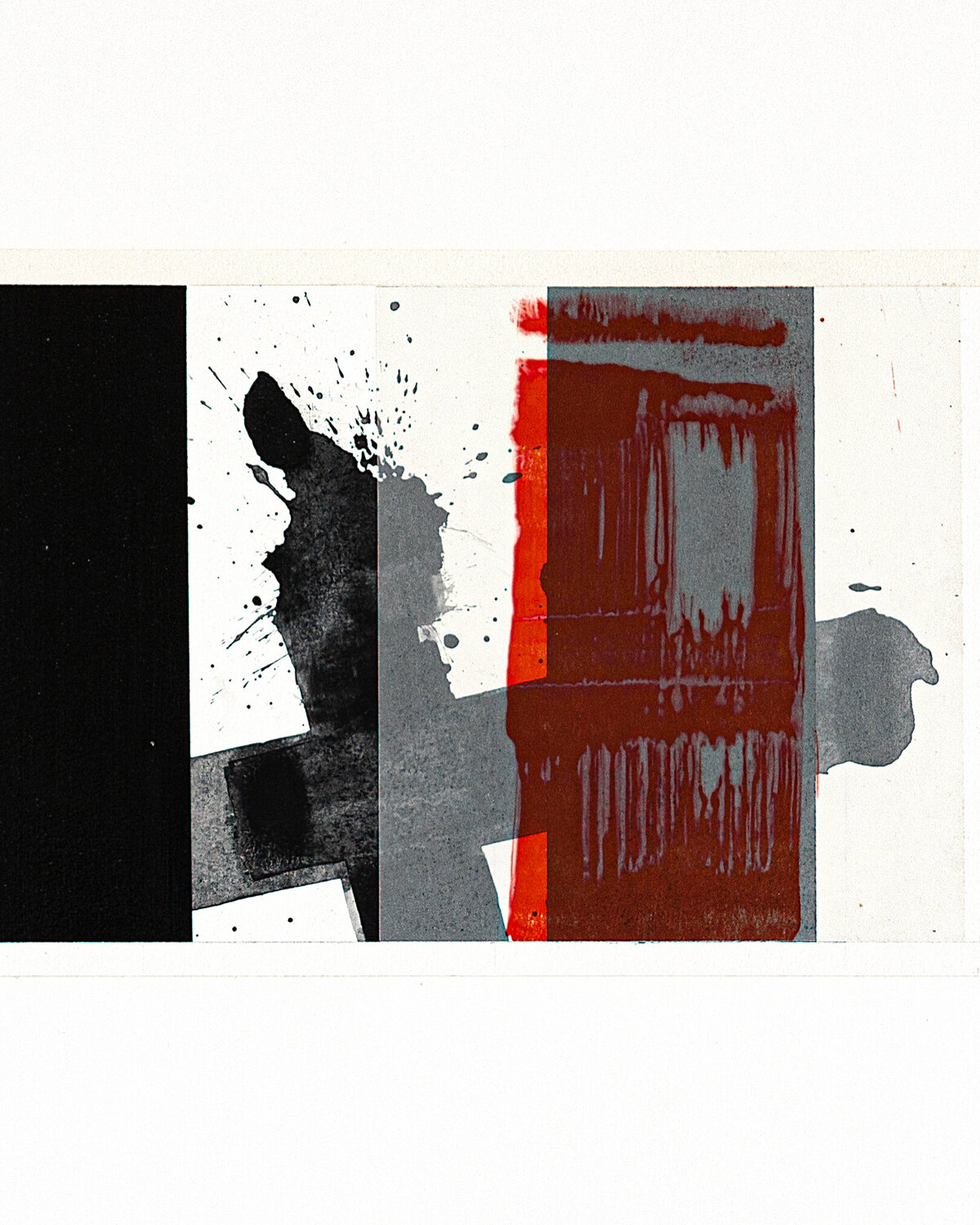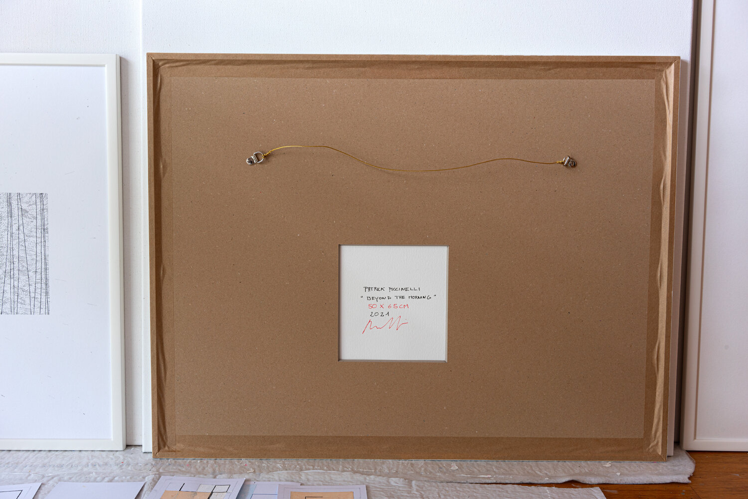 This work on paper by Patrick Piccinelli is representative of his research into the dialogue between randomness and structure. Piccinelli is sensitive to temporal passages (as is the case for this work which successively evokes the end of the night and the beginning of the day). He is a morning painter; who gets up early to go to his studio because it is the most favorable time of day for his pictorial work. The red trace is a laser print on tracing paper. This red zone partially covers a black rectangle; another way of representing the transition from sleep to wakefulness.“Beyond the Morning” represents the future; hope; and opportunity. It is a new beginning; a moment of freshness and optimism where everything is possible; the transition between night and day; symbolizing the end of darkness; and the beginning of a bright period.“By making an insistent trace; Tàpies refers to the wall and the graffiti.”