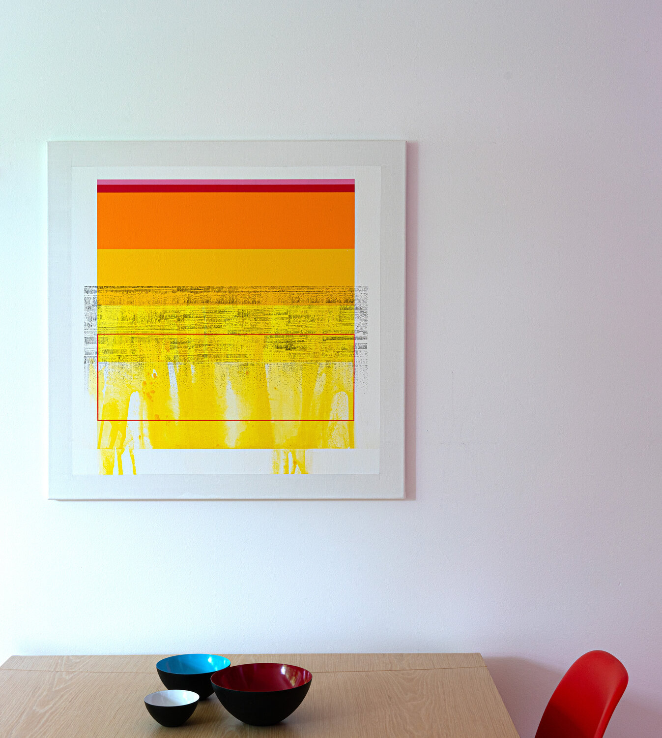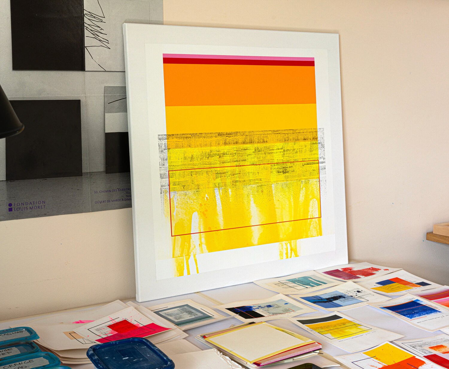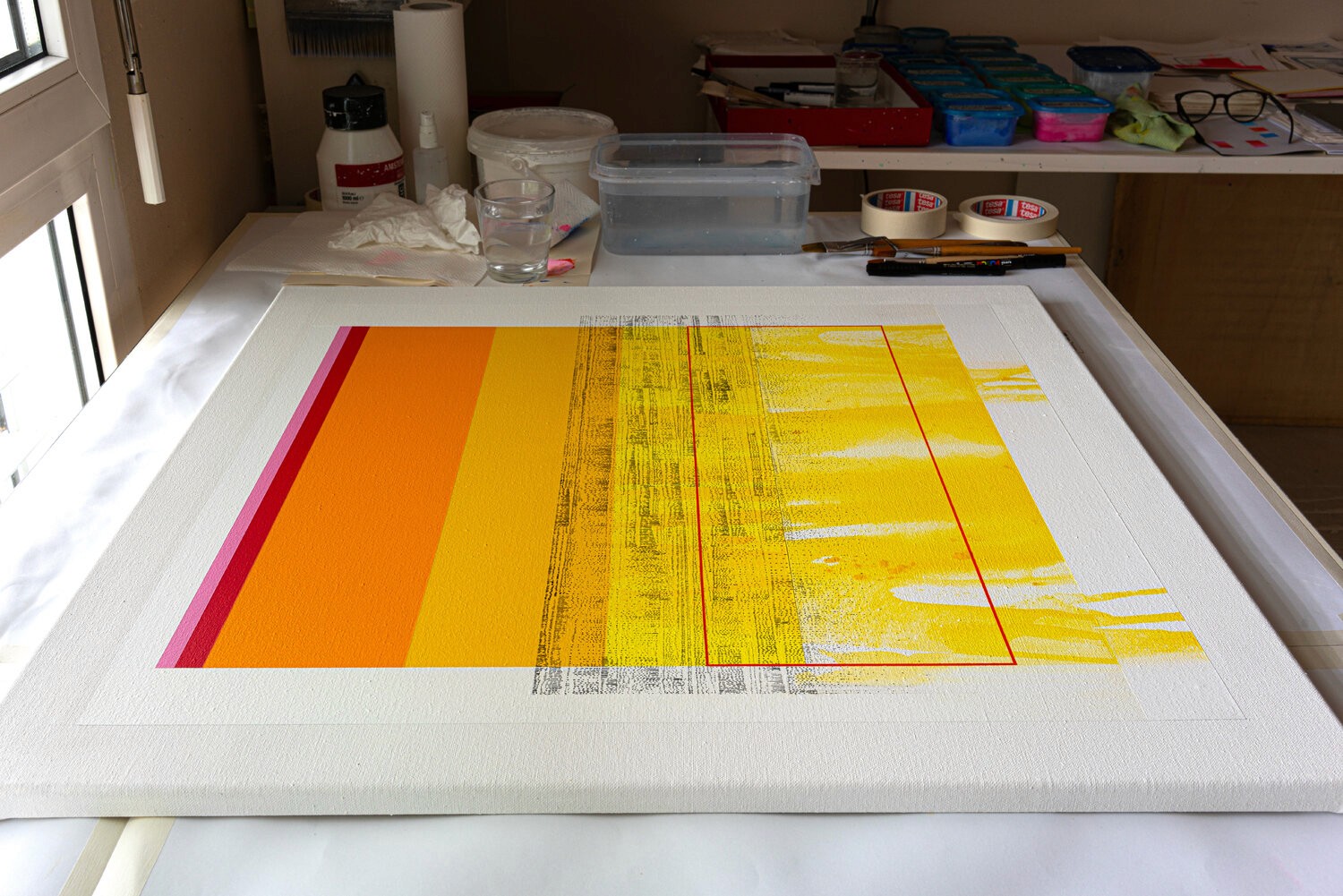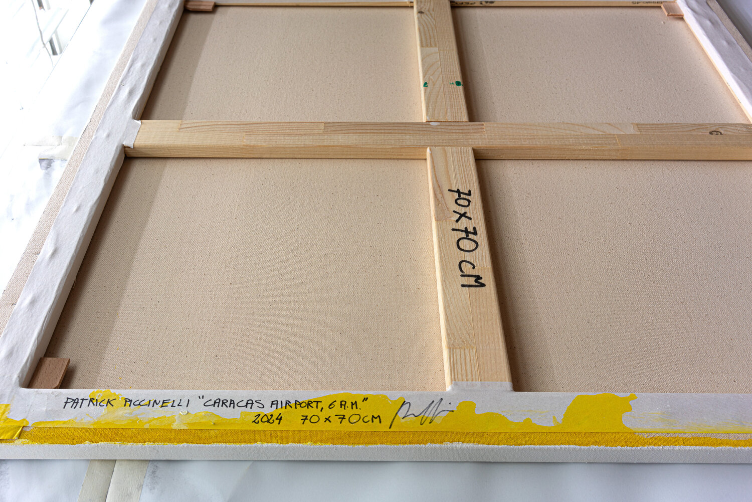 I painted this canvas with the best quality acrylic artist paint. The drawing is made with a very pigmented and light-resistant paint marker. My assistant stretched excellent quality "Arles" canvas on a very solid frame and the surface was prepared with 2 layers of gesso and a layer of titanium white acrylic.At six in the morning; the Caracas airport feels out of this world. The darkness of the night slowly gives way to the first light of dawn; my plane will take off in the light of the rising sun.The top layers in bright yellow and orange evoke a new day. It is an invitation to contemplate the promise of each new day; as a new beginning; with hope and energy.The Caracas airport at six in the morning is a scene of transition; a crossroads of destinies. It is a place where hope and expectation mingle; where every smile and every hug are the beginnings of a new story.