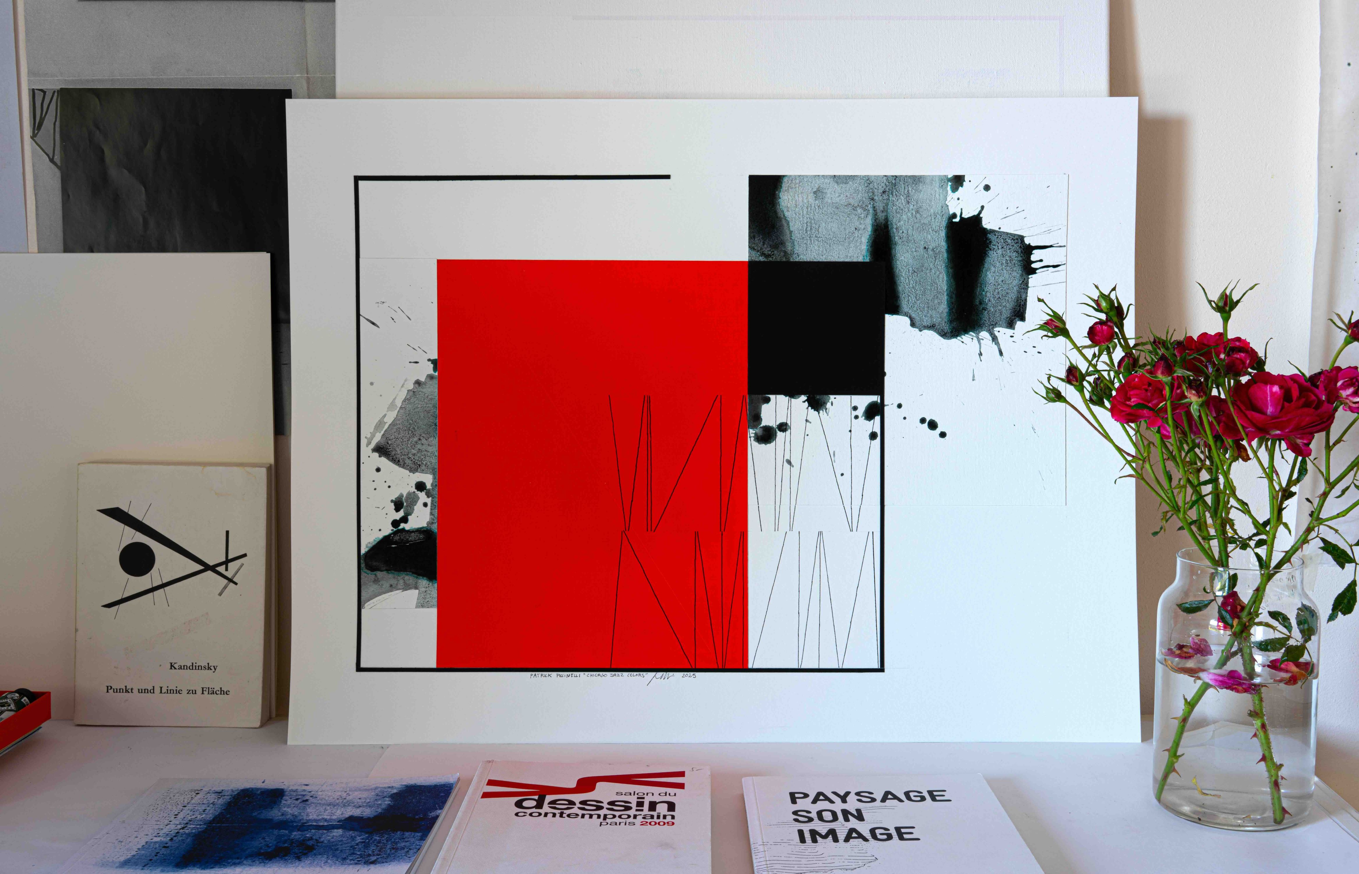 The vibrant red that dominates the composition evokes the intensity and passion of Chicago jazz. The irregular black lines that cross the red can be read as graphic representations of the syncopated rhythm and improvisations characteristic of jazz.