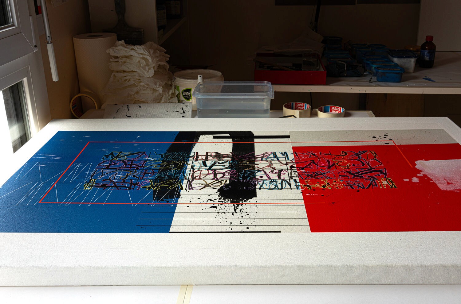 With this work I express the dynamics associated with the improvised and expressive music of free jazz; a musical genre known for its spontaneity and its break with traditional structures. I visually transcribe the energy and controlled chaos of this music listened to in my studio.