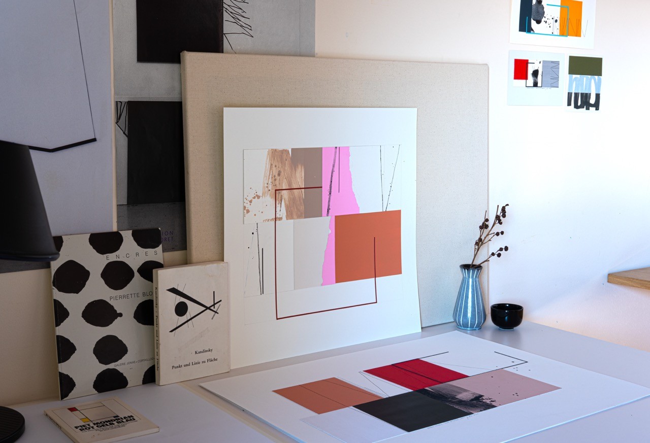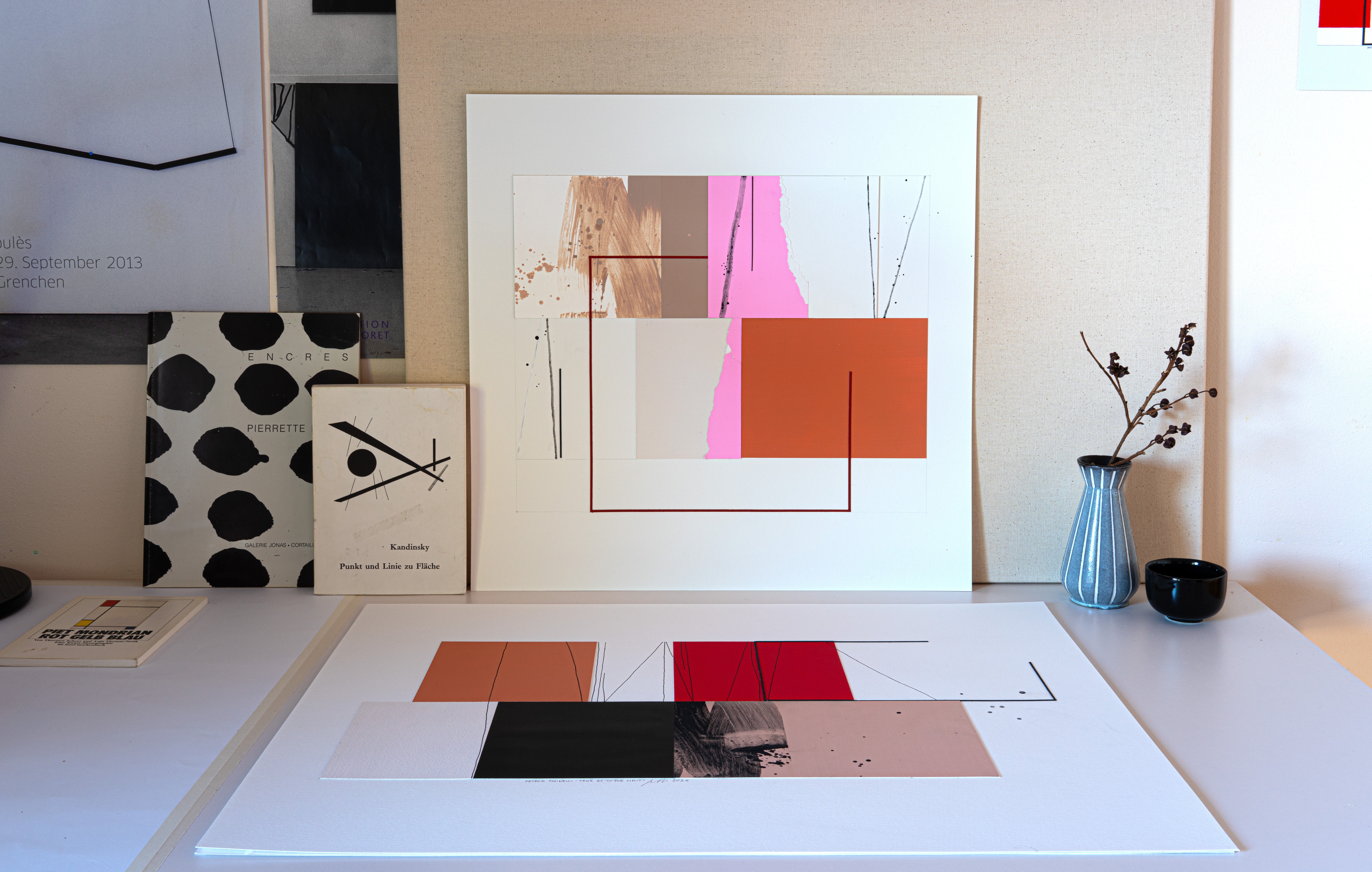 Collage, acrylic paint, pigment