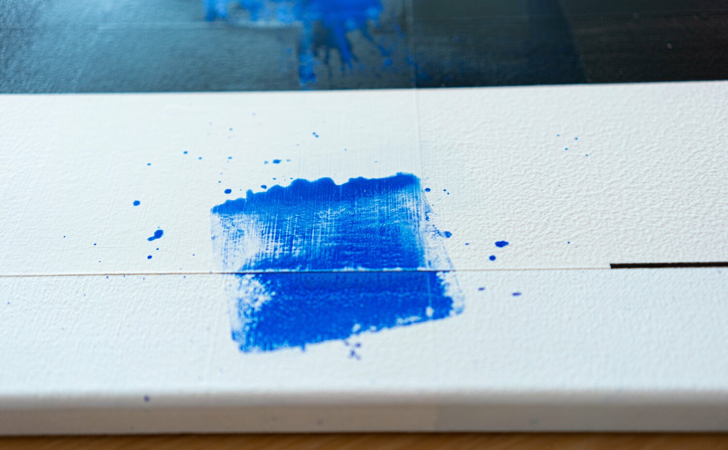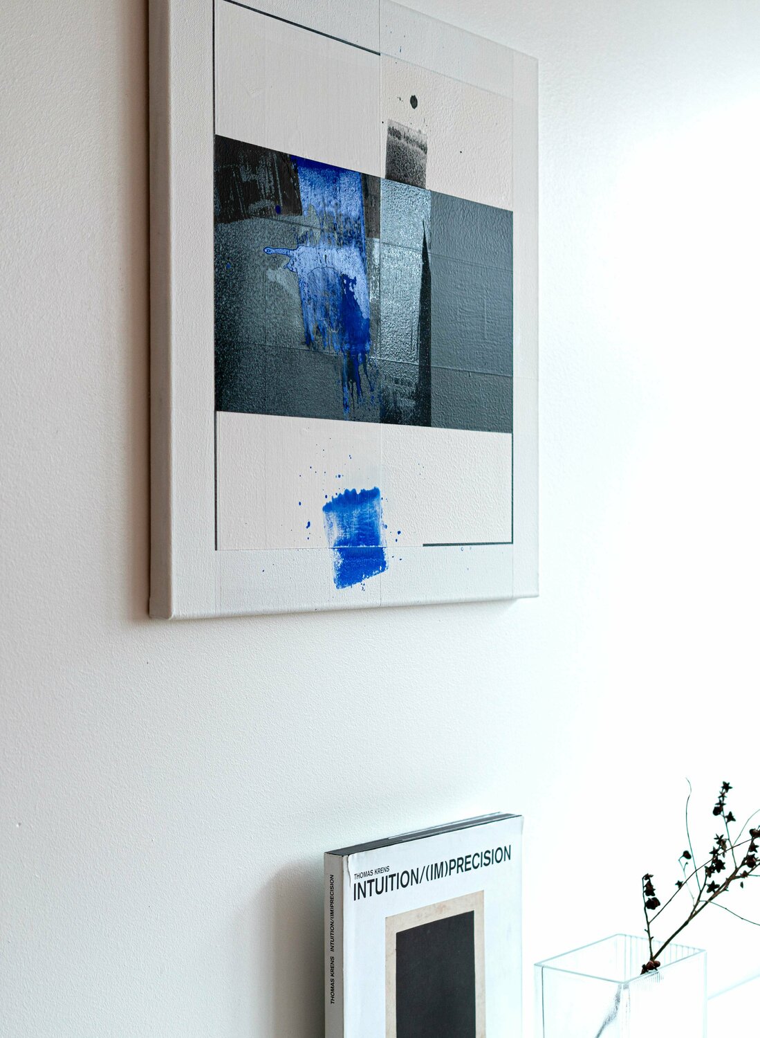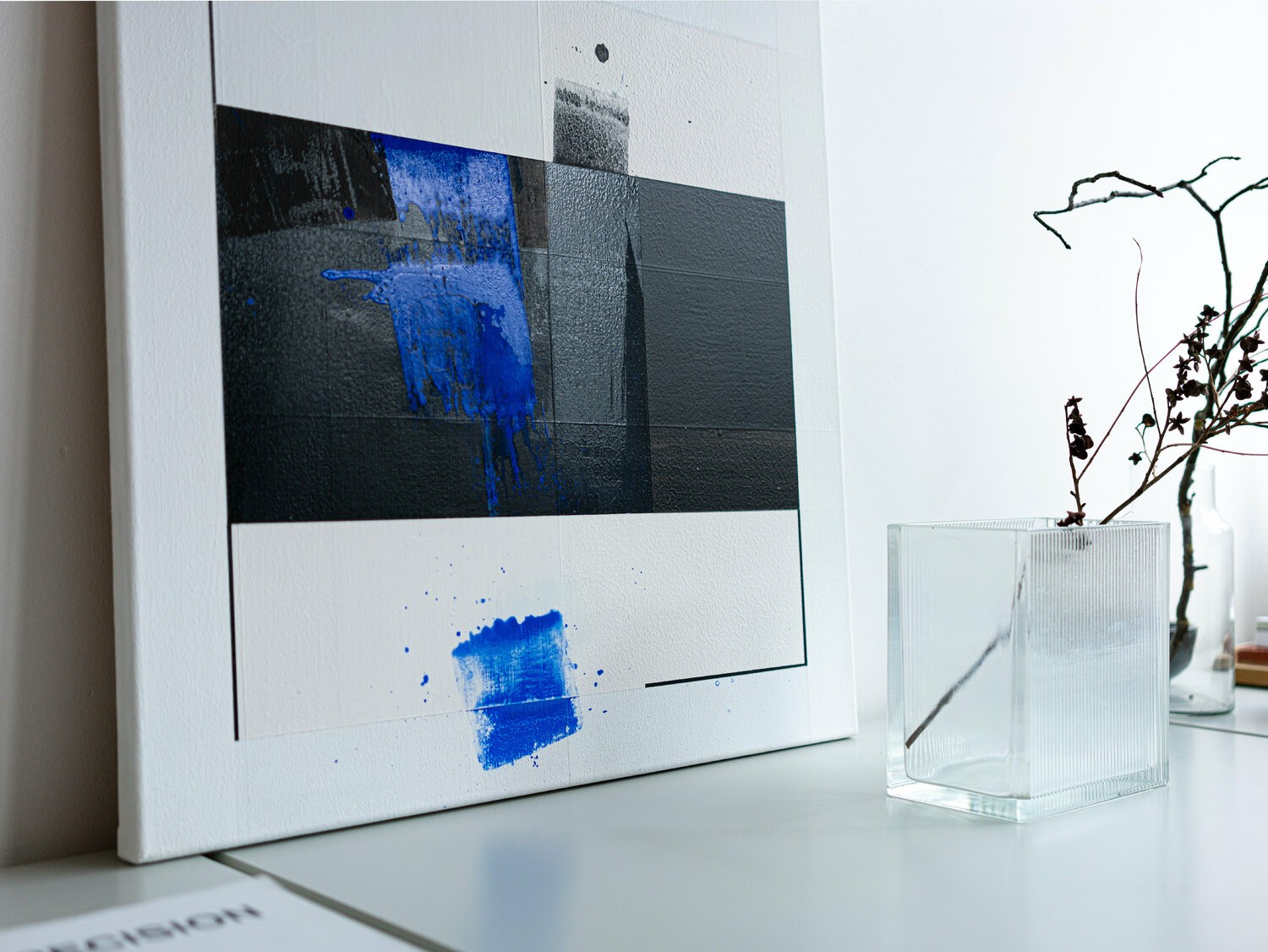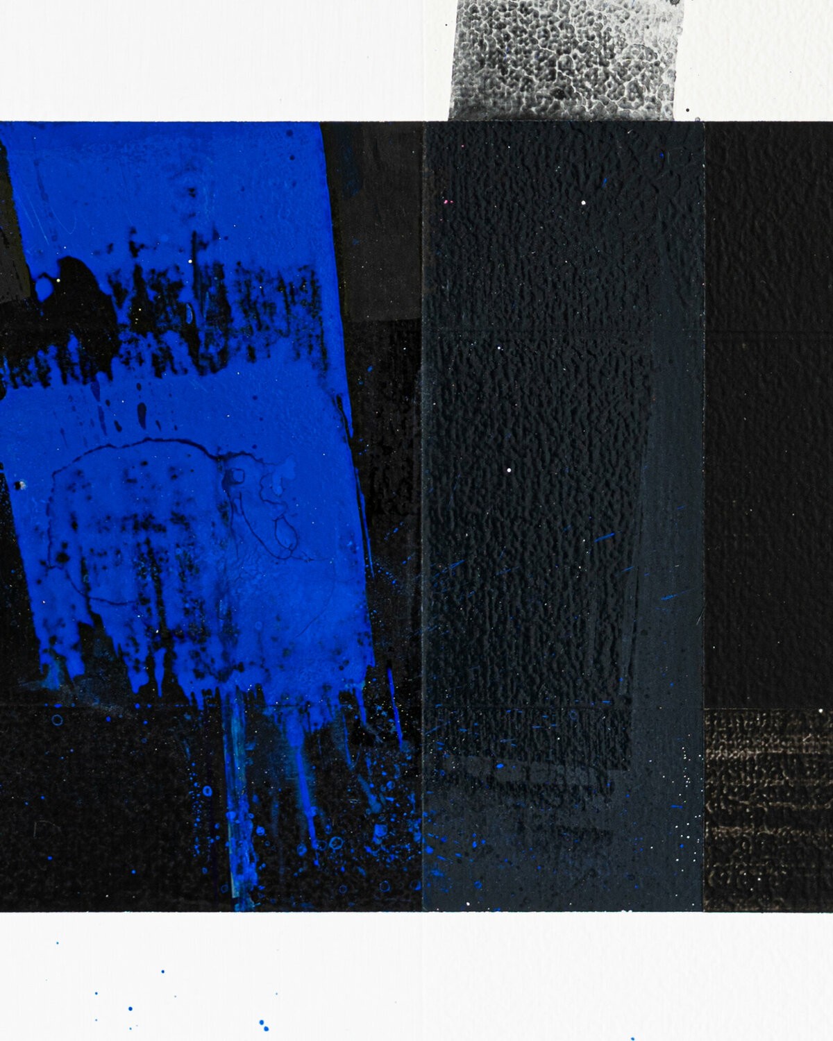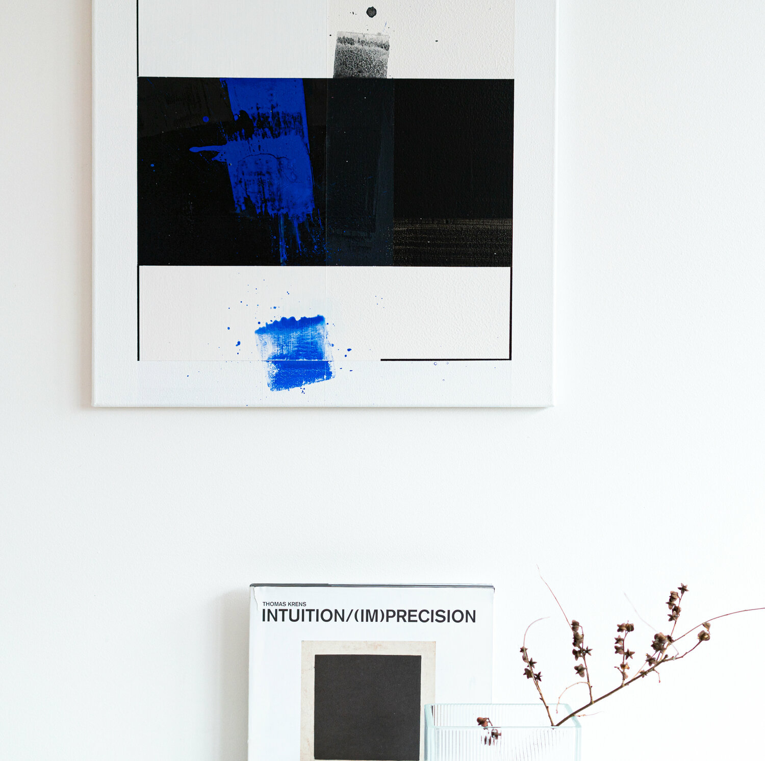 Like Matisse; Piccinelli is increasingly interested in the theme of the window. In this composition the artist plays with the notion inside / outside. The blue and black traces are released from the first frame and spring out towards the periphery; from the inside to the outside. For the painter it is a metaphor for the creative process. The pictorial work comes from his inner world; his painting is the sensitive and deep expression of his heart.Three vertical bands of light color framing a deep black rectangle: painted by Matisse in 1914; “Porte-Fenetre à Collioure” could be an abstract painting; as the extreme simplification of forms reaches here its most radical expression. The window is thus for the painters at the same time a frame; a separation; and the point of continuity between the inside and the outside; "the privileged place where the cohesion of space is made visible" (Isabelle Monod-Fontaine).
