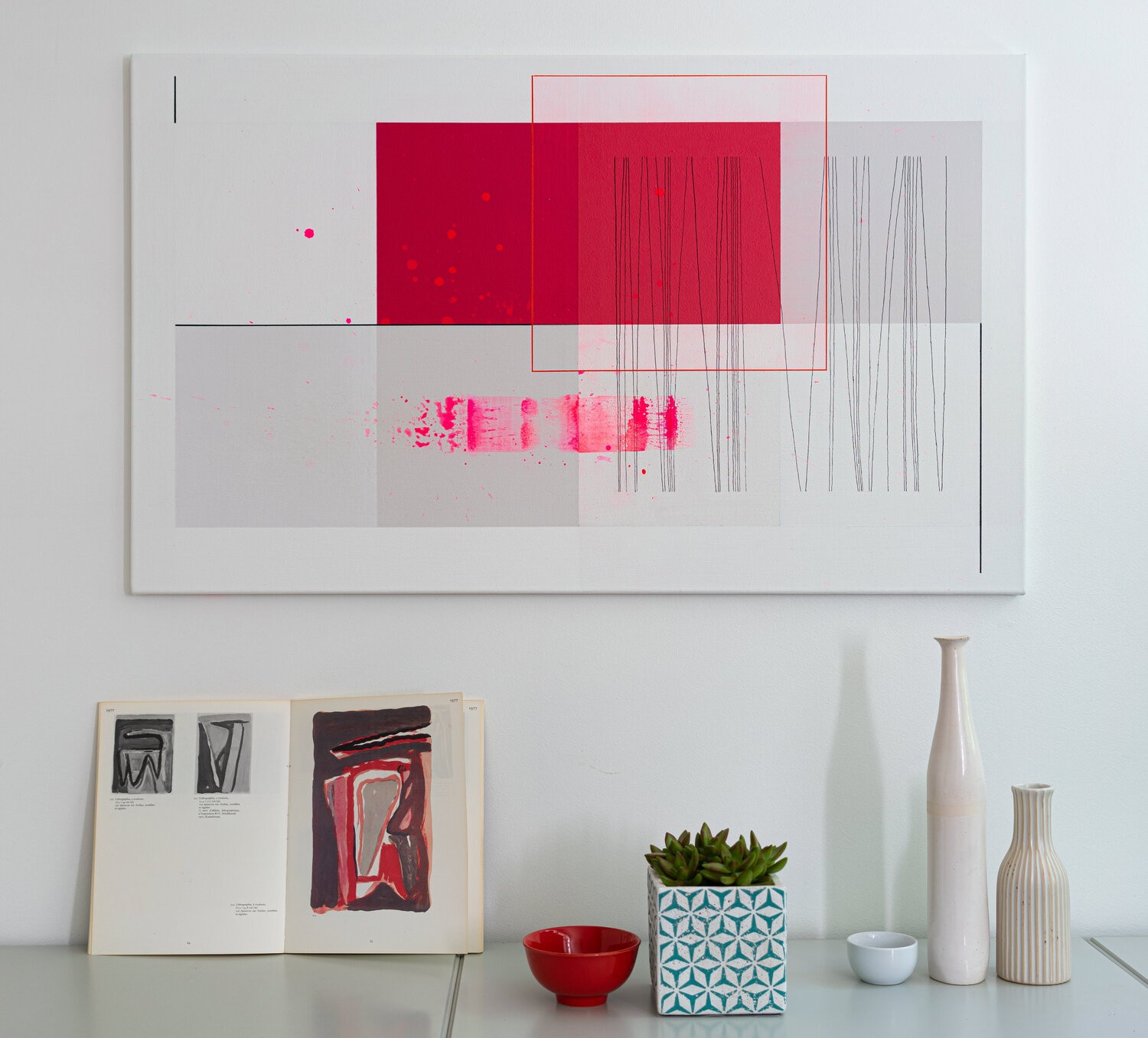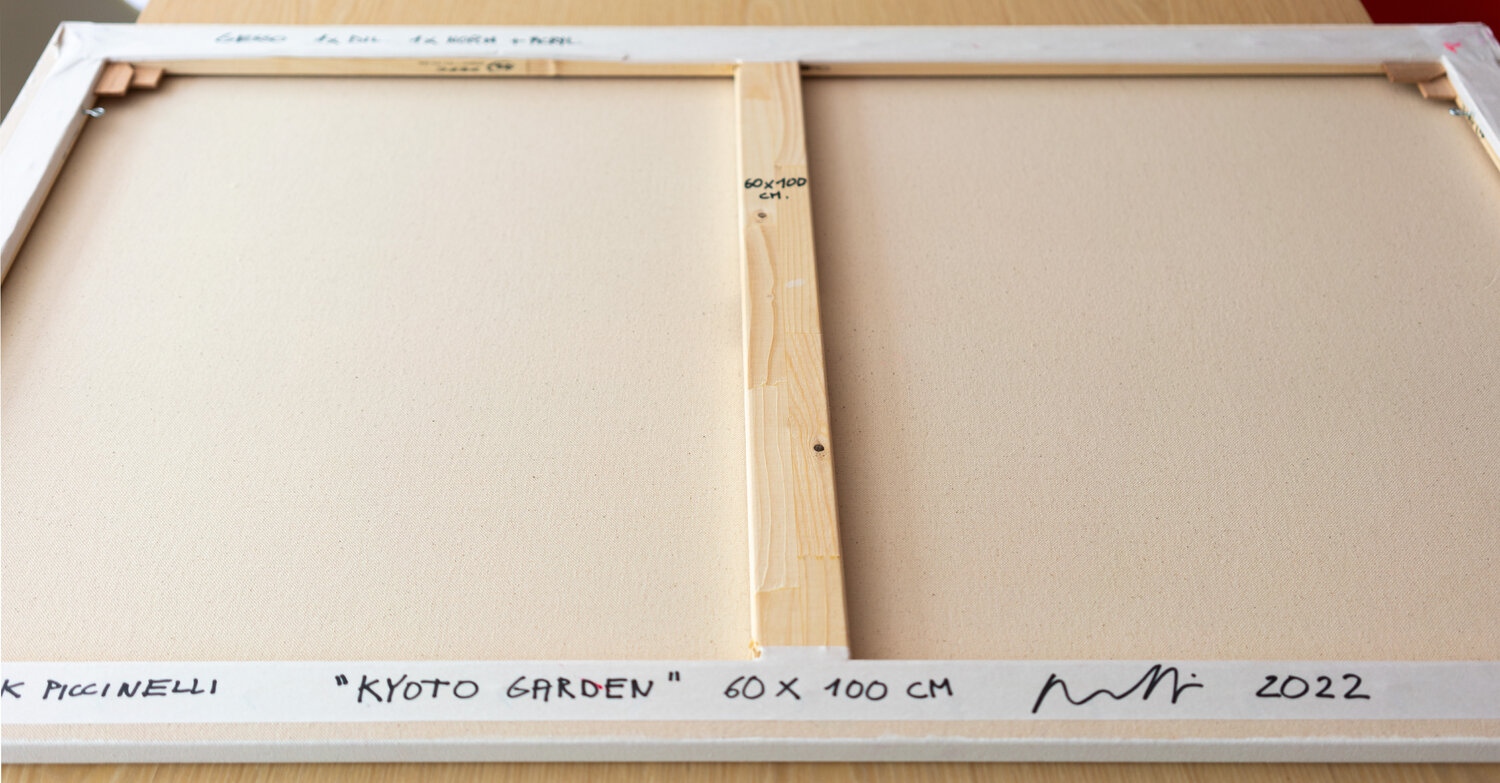 Patrick Piccinelli pays homage to the expressive; elegant and subtle force of Japanese art with this minimalist painting.This composition evokes for Piccinelli a walled garden; a peaceful place; buzzing with life and perfumes. It is a garden that invites the contemplation of grace and the recognition of life. A space outside of time.