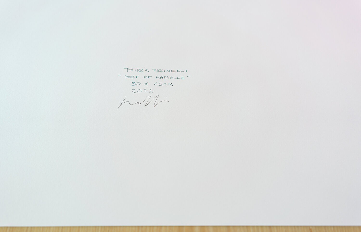 This work on paper by Patrick Piccinelli evokes Western civilization through its geometric and structured composition. But its title "Port De Marseille"; suggests an "elsewhere" because the African continent is not far away. Marseille is a French city but you can smell the scent of Africa everywhere in the city.