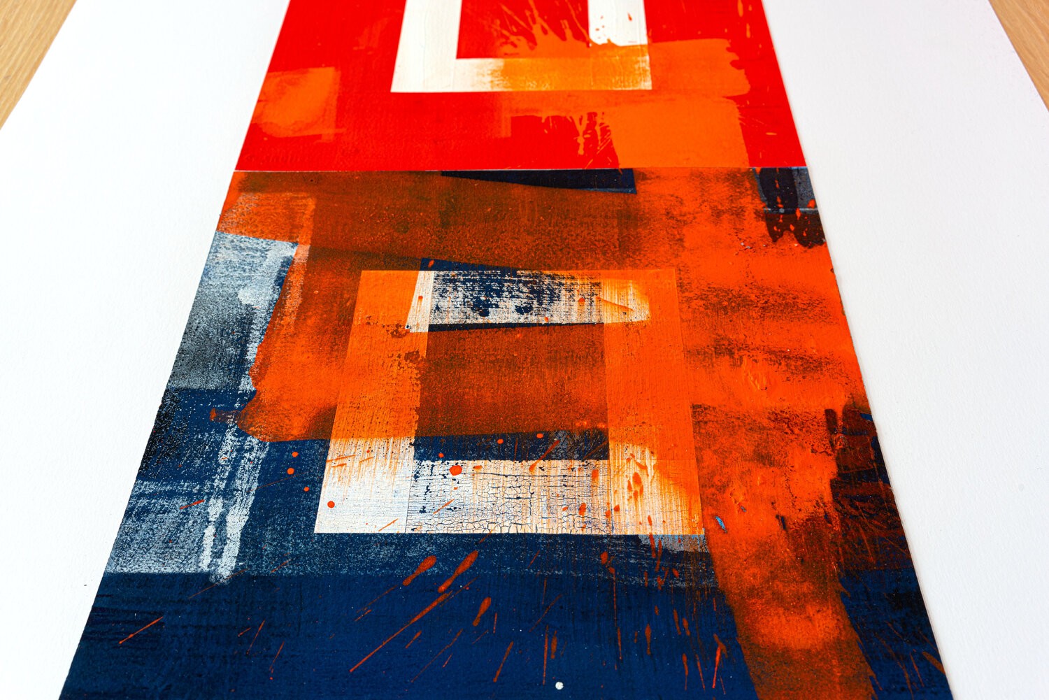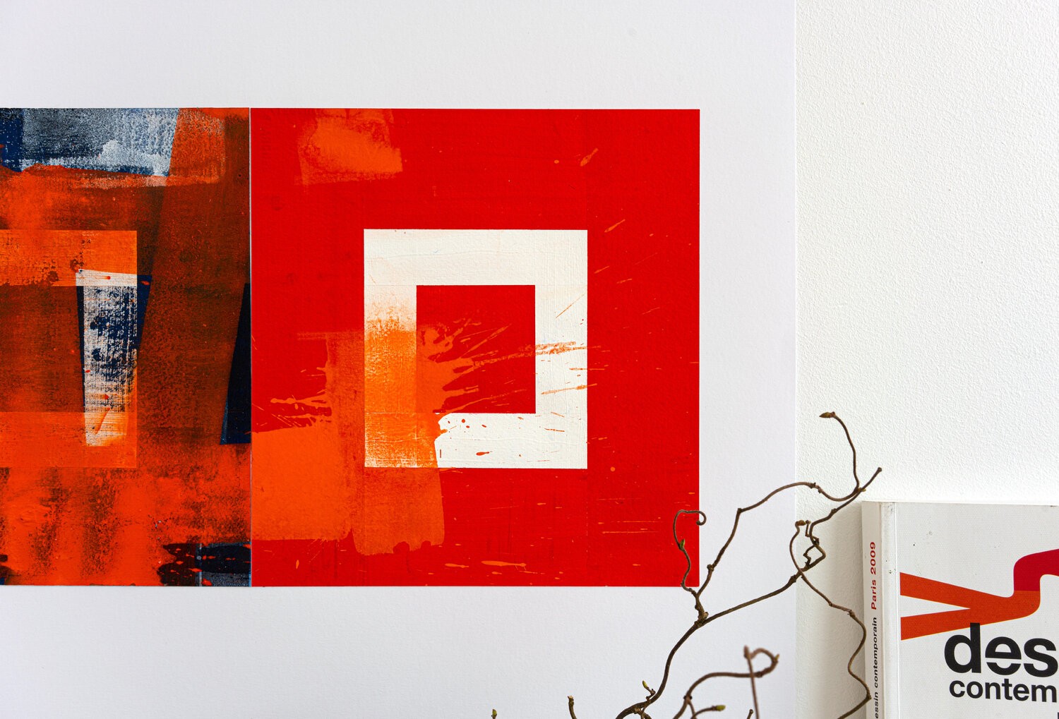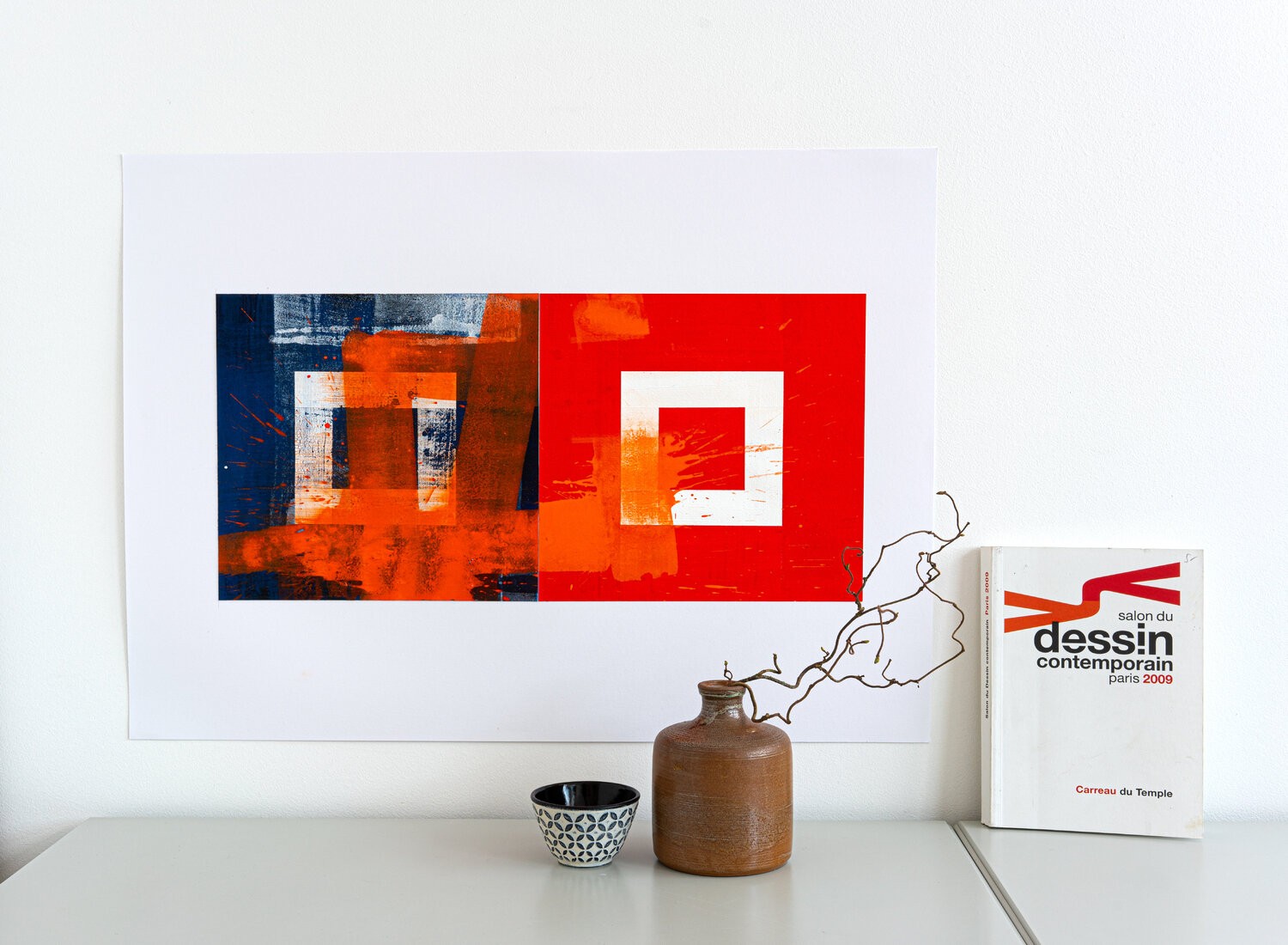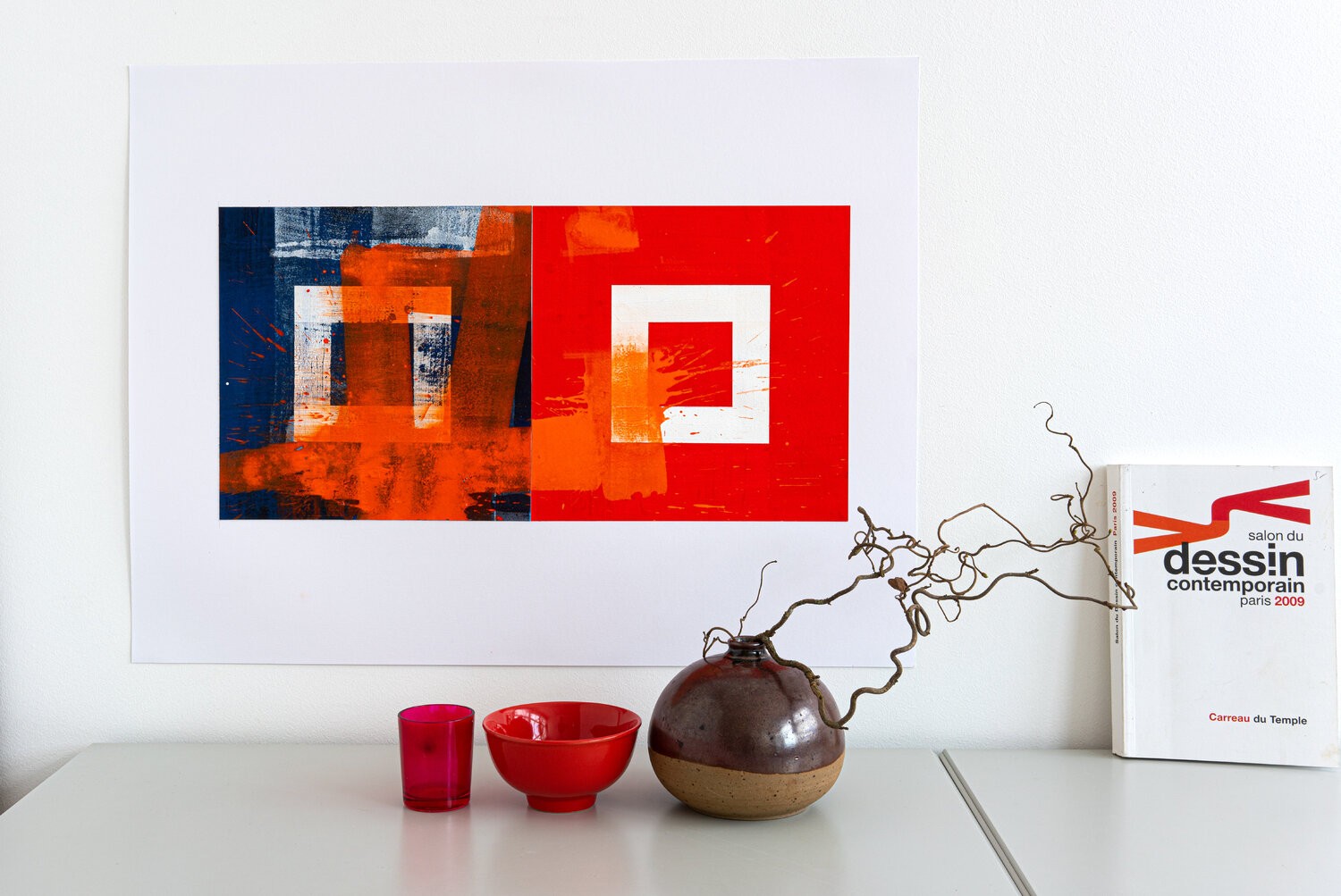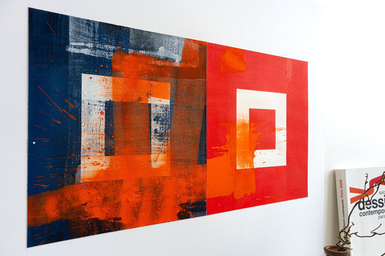 This duality interests Piccinelli who translates this tension in his search for a rigorous minimalism diverted from its sobriety by random traces and splashes.Shades of blue and orange represent the warmth of the south for Patrick Piccinelli; who has distant origins in Italy.“The seats on the Promenade des Anglais were empty. The last strollers strolled in the cobalt tenderness of the twilight. We heard isolated laughter; exclamations. Lola descended the stairs of the old port. The siren of the liner for Livorno resounds; deaf; deep."