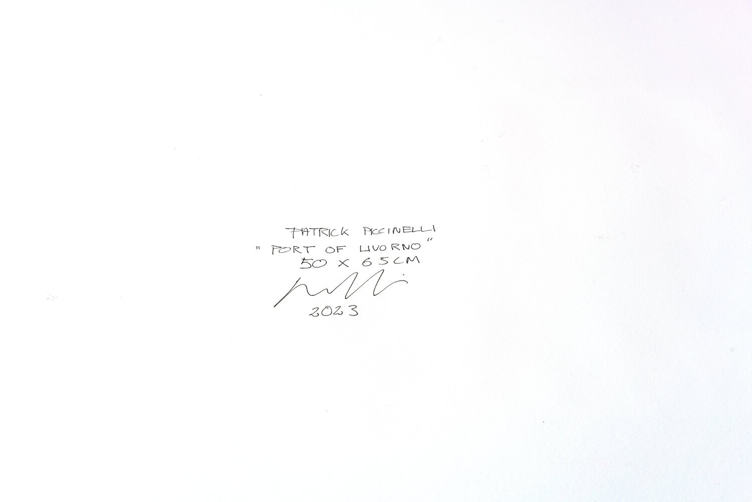 This work on paper by Patrick Piccinelli evokes Western civilization through its geometric and structured composition. But its title "Port Of Livorno"; suggests an "elsewhere" because the African continent is not far away. Livorno is an Italian city but you can smell the scent of Africa everywhere in the city.