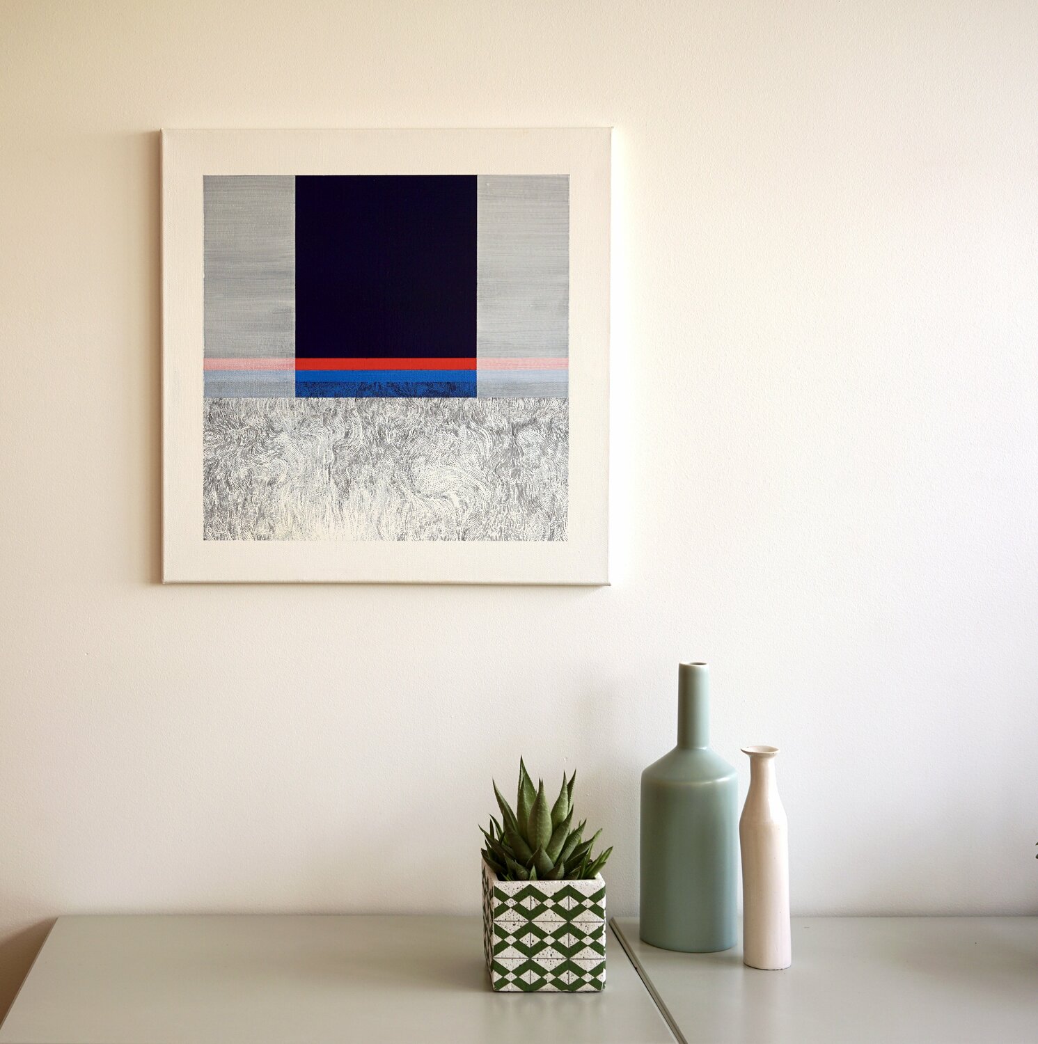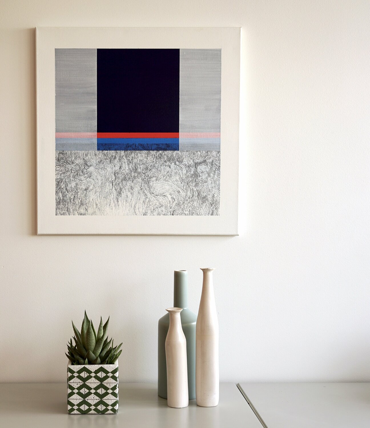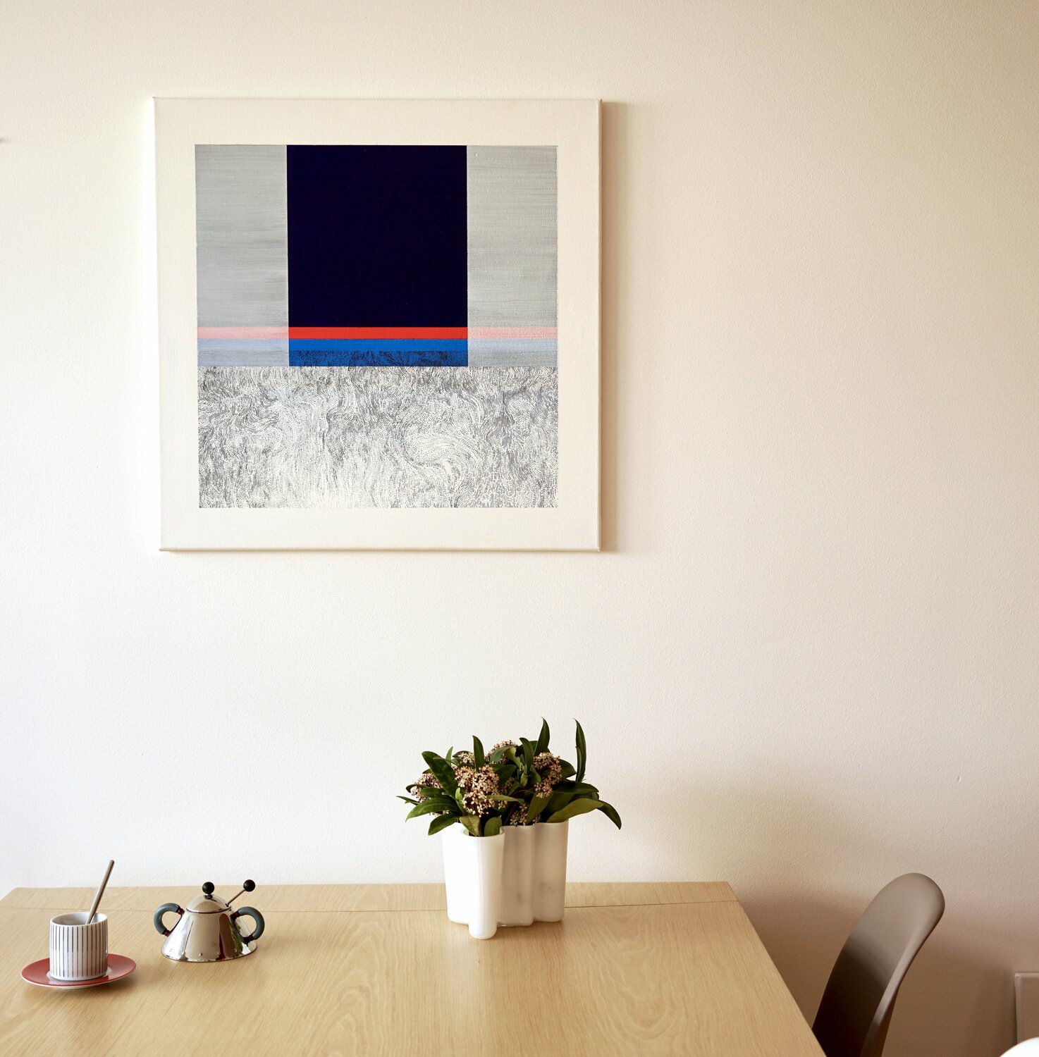La zone graphique avec ses méandres improvisés et informels dialogue avec les surfaces géométriques colorées.