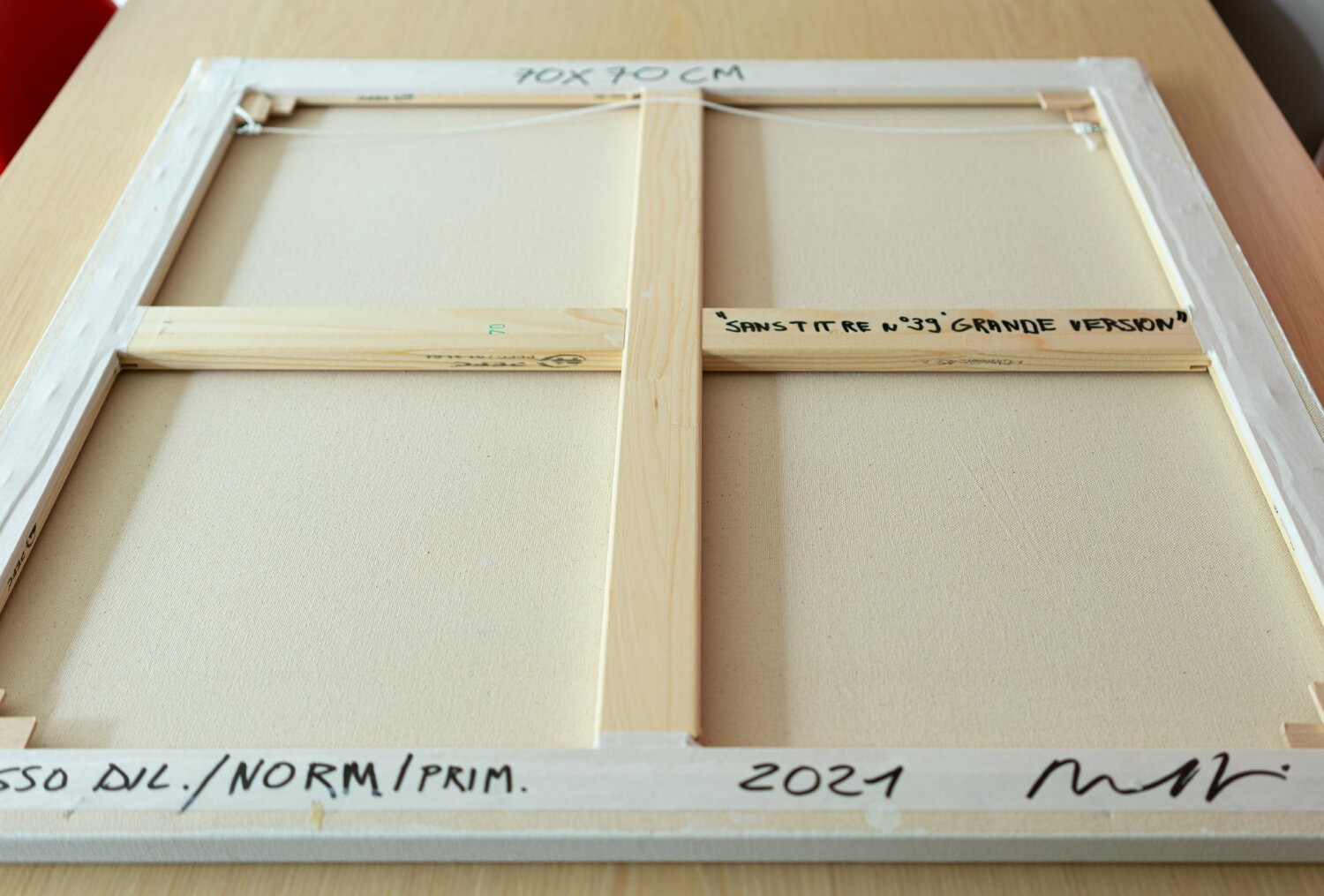 Large format version of the painting "Untitled no 39" with some formal and chromatic variations.In the exhibition "Fundamental Painting" Agnès Martin was represented by old paintings. She moved to New Mexico in 1967; where she lived in contemplation; withdrawn from the world. When asked later what she wanted to express with her paintings; she replied; “Beauty; innocence; and happiness; I would like all to represent that. Exaltation. No sentimentality; she hastened to add; but universal emotions; like those in music.