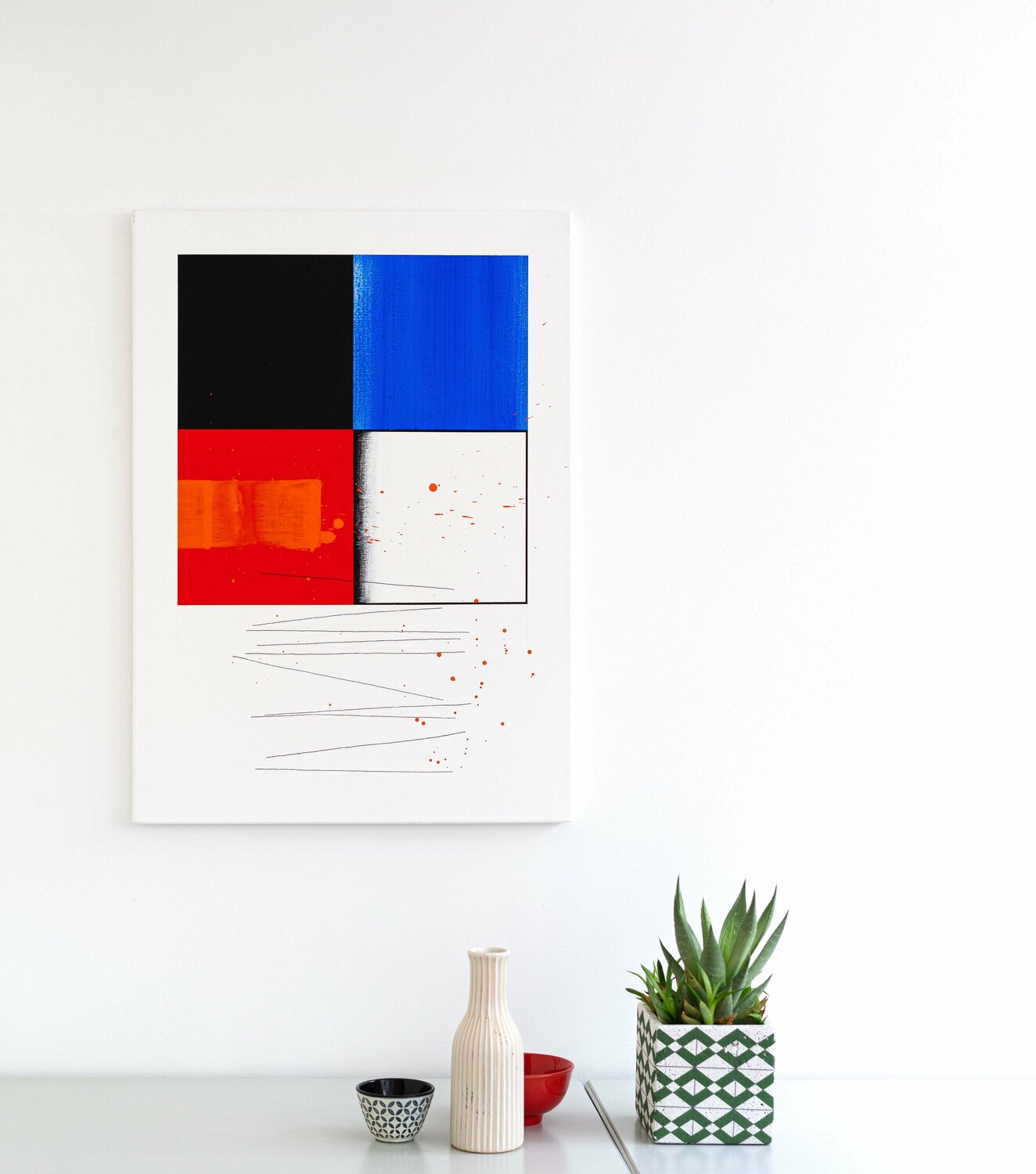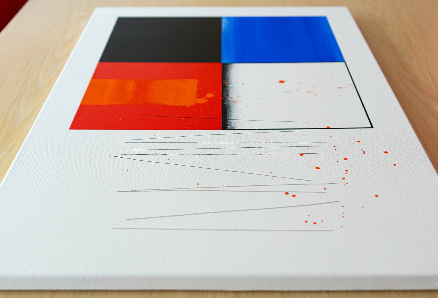 The orange trace is made with a pure cadmium orange pigment; added with an acrylic binder.