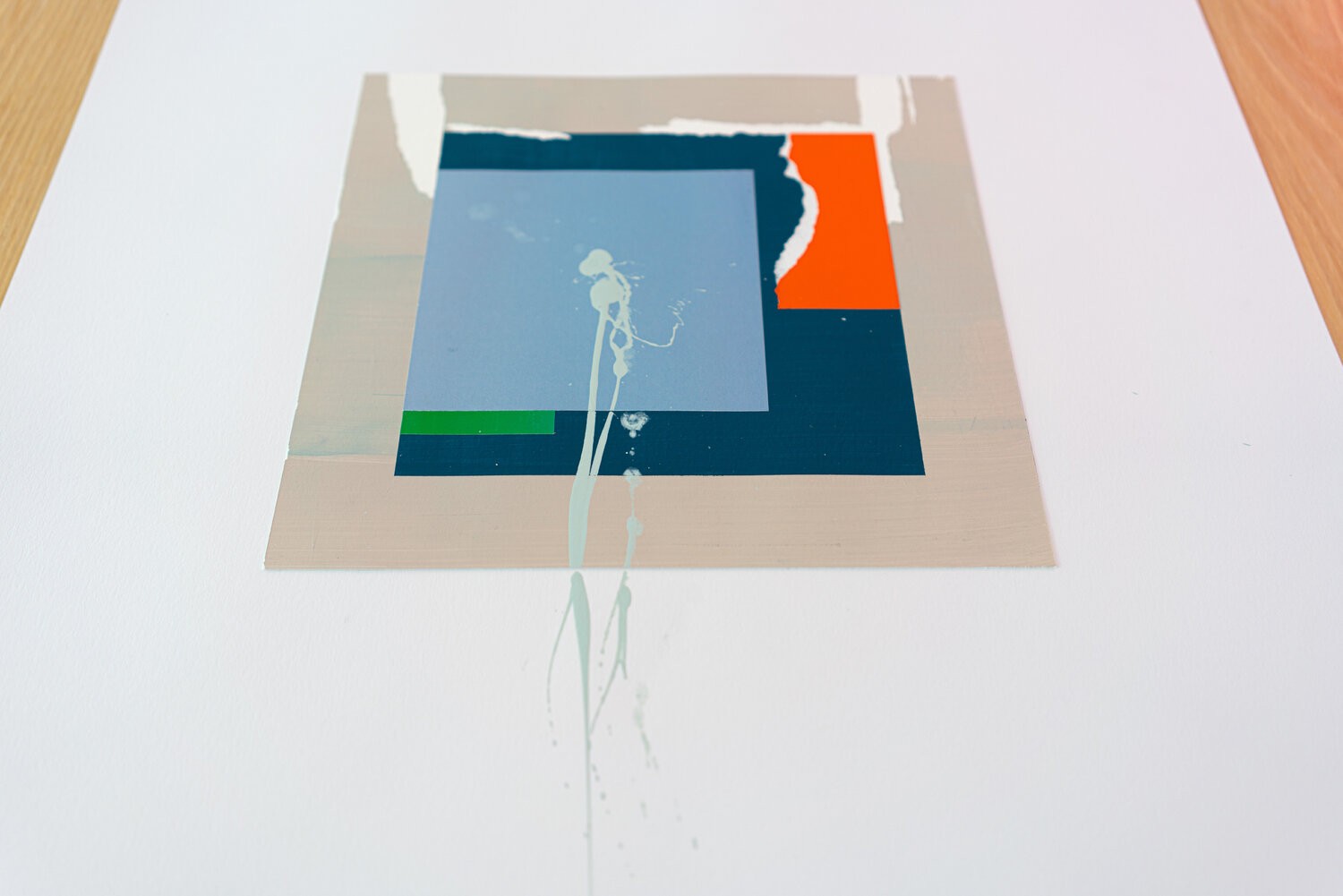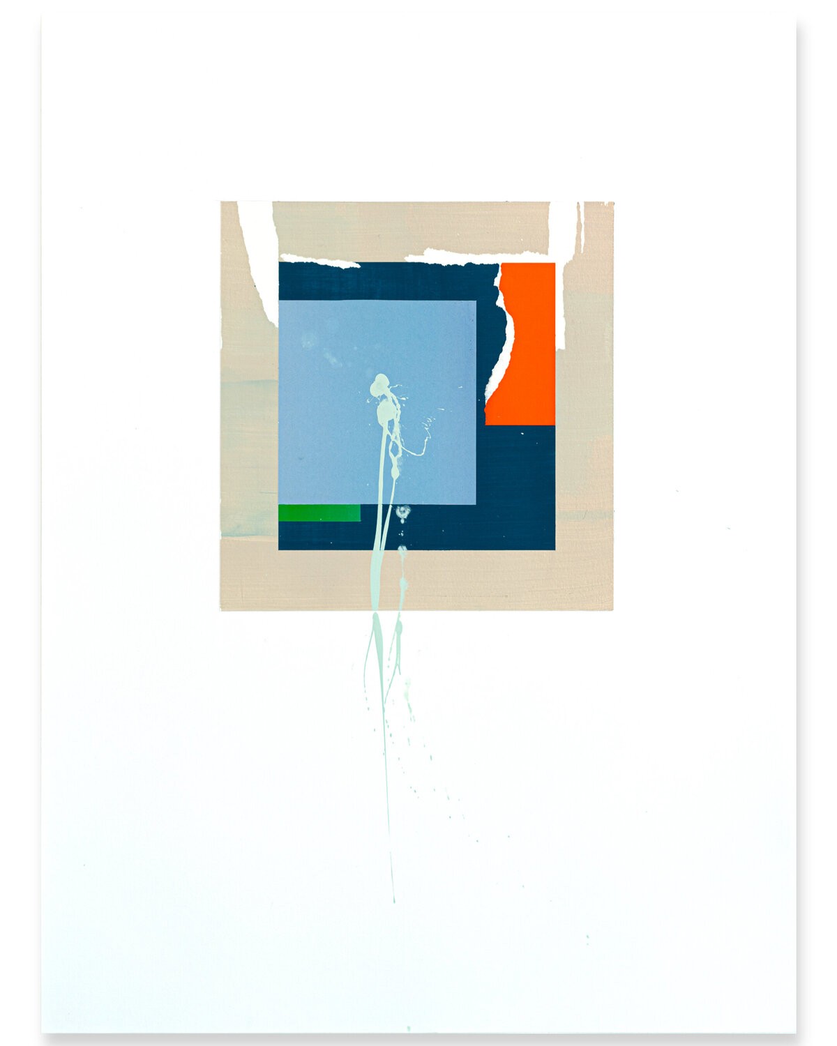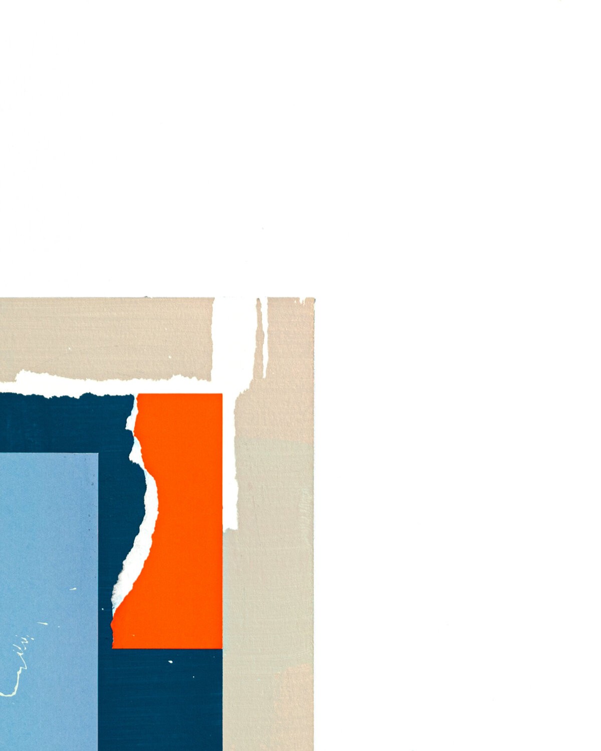 Piccinelli produced this work on paper using collage and acrylic paint. the white paper areas were obtained by tearing the paper but also by tearing it off after gluing.