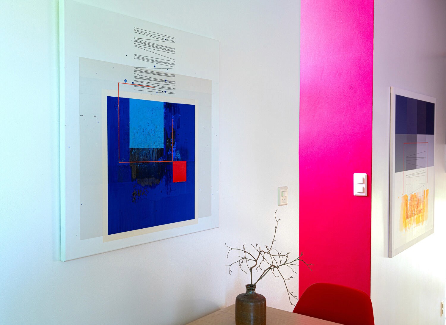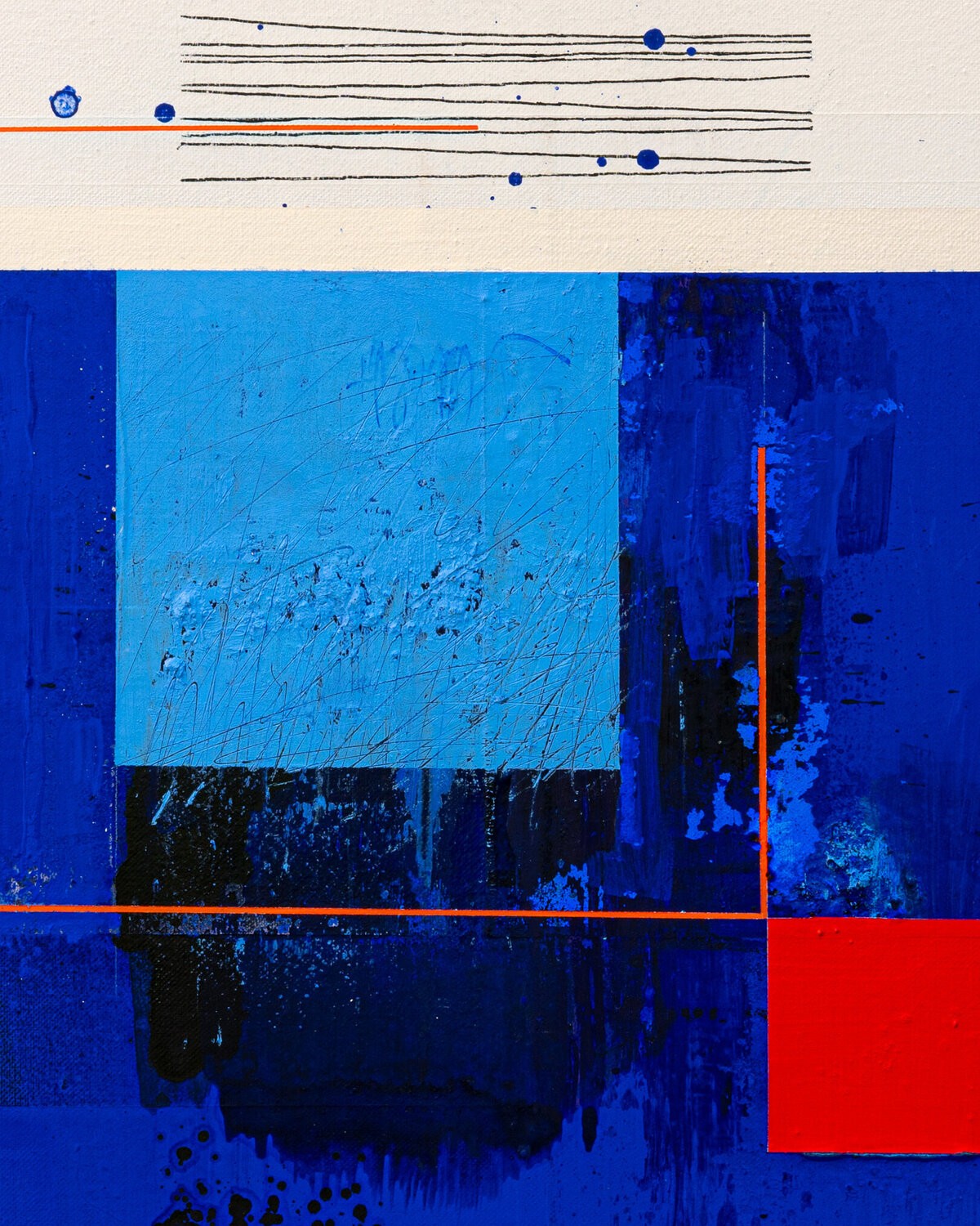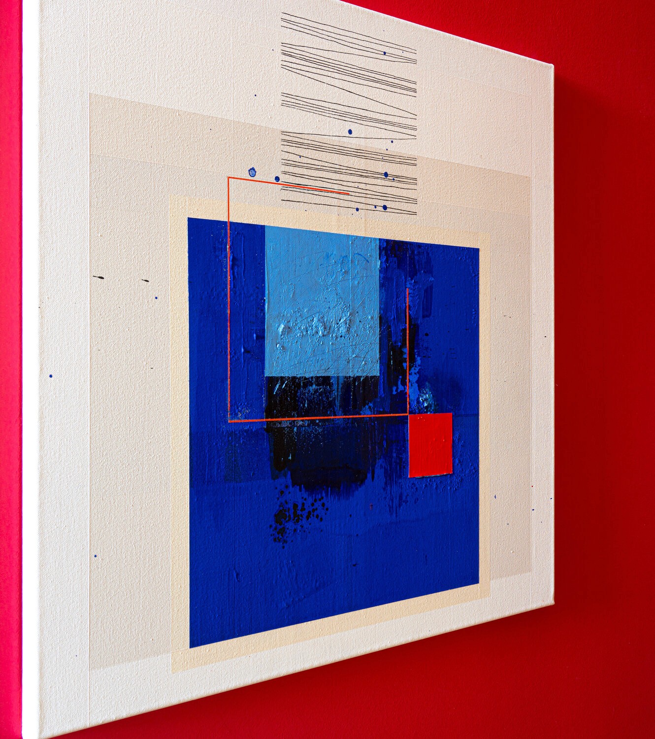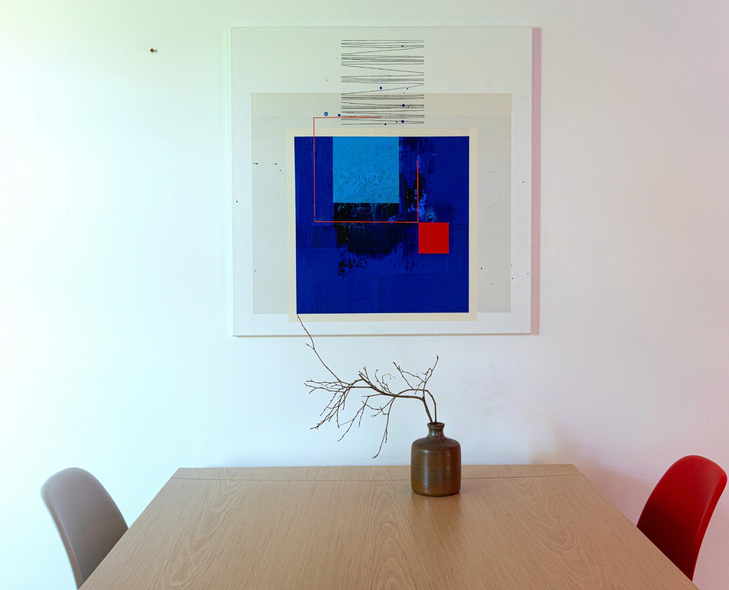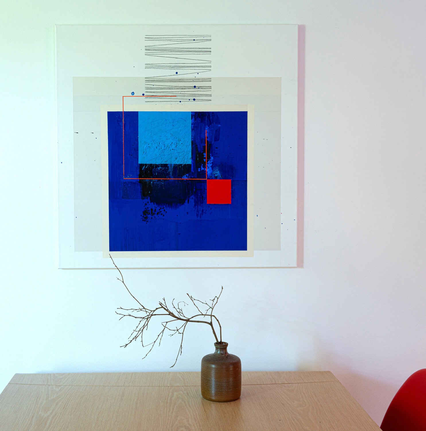 I created this work with high quality artist acrylic paint; ultramarine pigment; Indian ink and an oil pastel from the famous French brand Sennelier; which only uses pigments from first quality.For me; still water metaphorically represents serenity and inner peace. I love seeing a perfectly still surface of water; a clear mirror reflecting the blue sky and floating clouds. This tranquil water symbolizes a peaceful soul; freed from the disturbances and turbulence of daily life.Like Lake Neuchâtel (near my studio in Switzerland); peaceful at sunrise; the calm water evokes a moment of clarity and contemplation. It invites reflection and introspection; providing a space where thoughts can rest gently; undisturbed by waves or strong currents. So still water is a powerful metaphor for inner peace; deep reflection and strength.