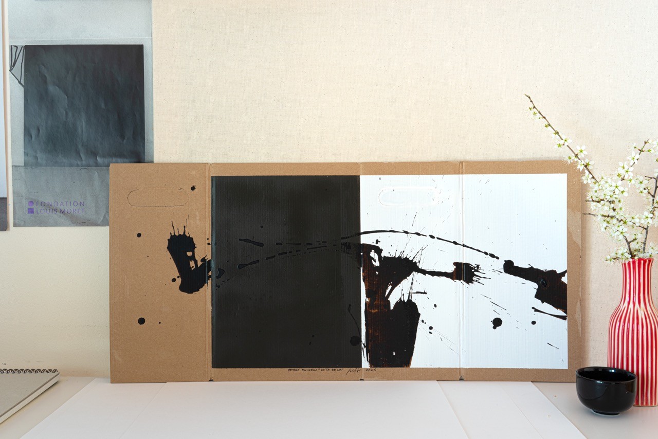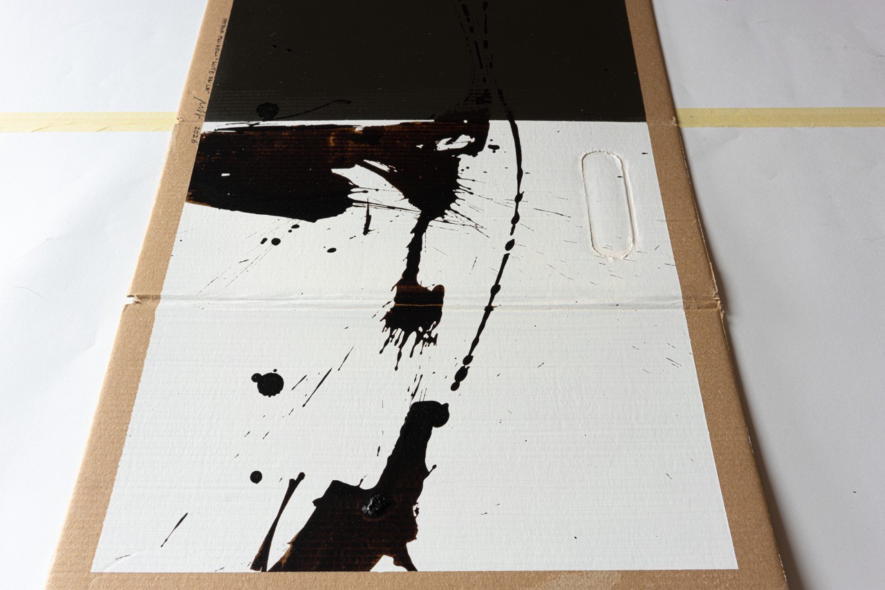 The choice of medium: recycled cardboard, with its ridges, its embossed indentations, and the traces of its past life. Just as Rameau worked within inherited forms—the suite of Baroque dances—I start with a material that is already inhabited, already marked by time. The cardboard is not a blank canvas; it is already a memory.