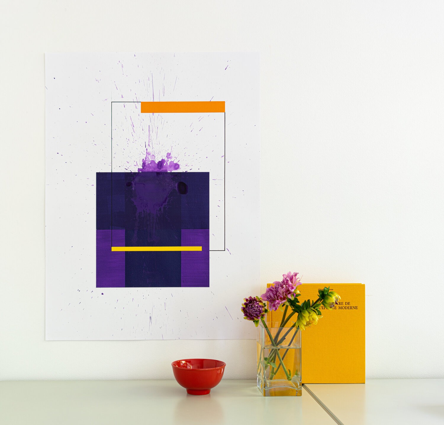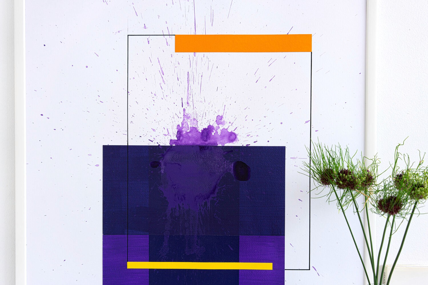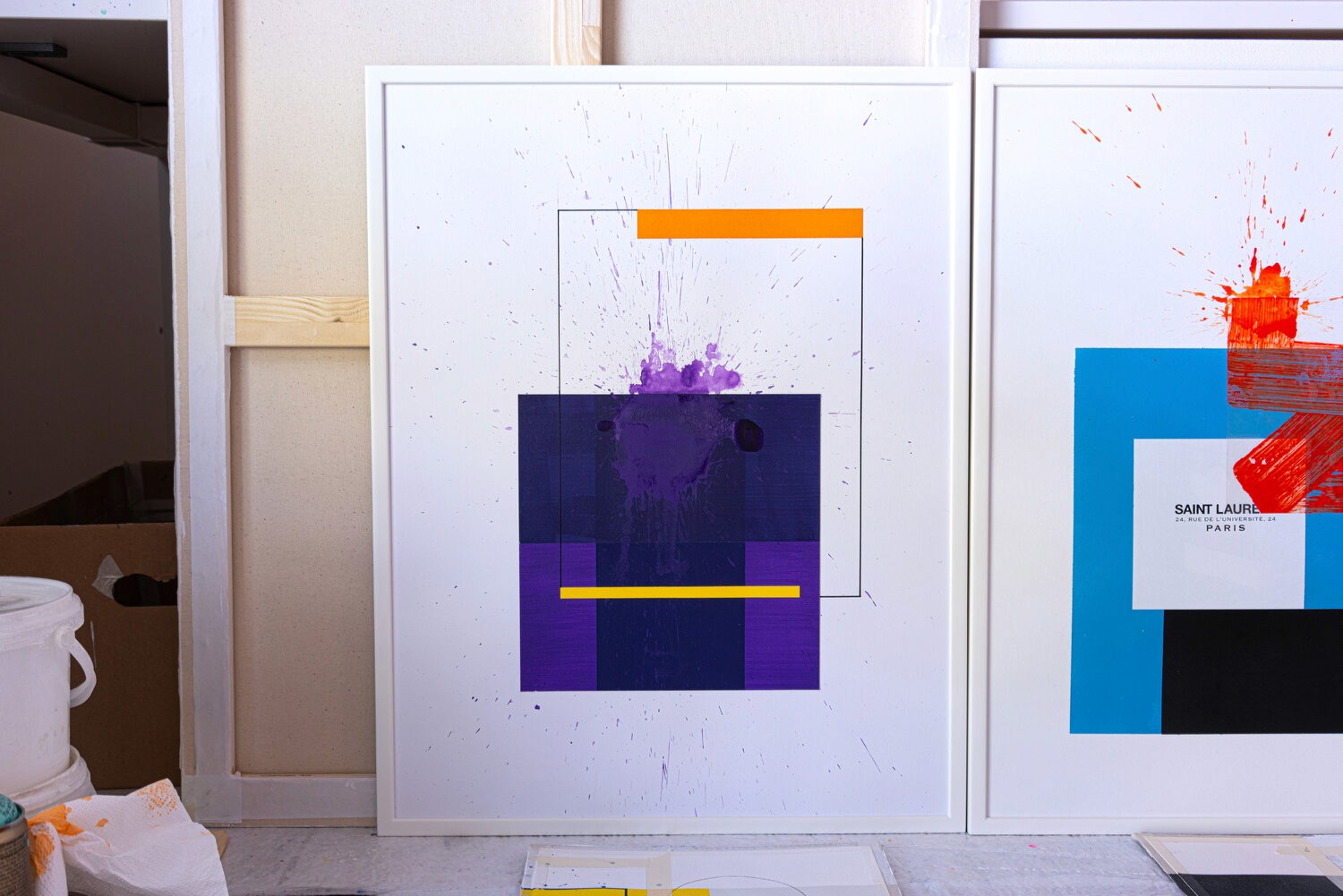 This work is framed but without glass.Piccinelli; by creating this work on paper; demonstrates how important the void is in his way of composing. He seeks a visual force but with the least possible means.For Patrick Piccinelli; summer symbolizes both gentleness and violence. A sweetness of life; a different rhythm; the "dolce vita"; with at the same time the night storms so sudden and extreme!This balance; these contrasts; are found in this composition. This work on paper expresses by its geometric structure the calm of hot summer days. on the other hand; the splashes bring a break similar to a violent storm bursting in the middle of a peaceful night.