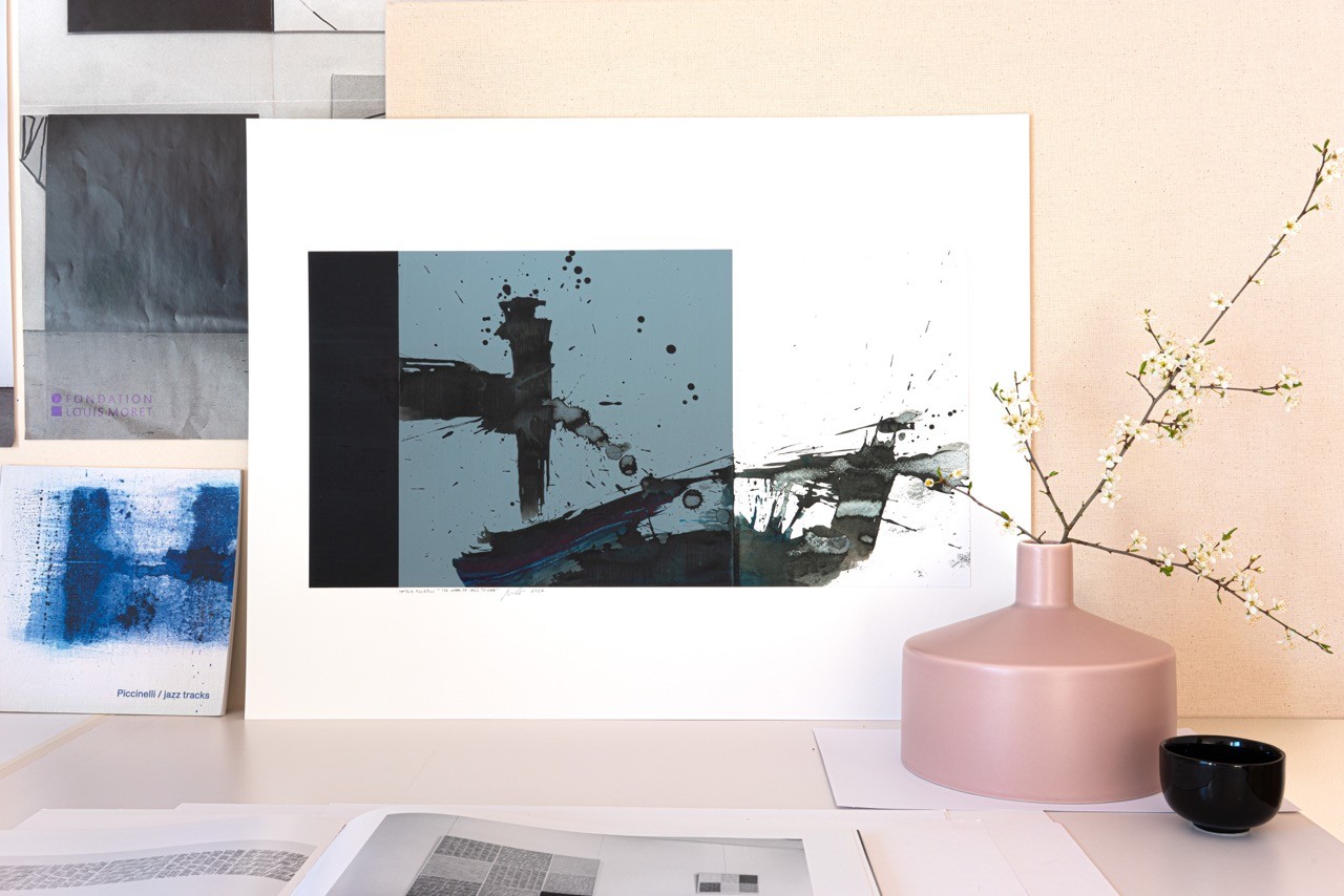 This work on paper is inspired by Ornette Coleman’s album *The Shape of Jazz to Come*.