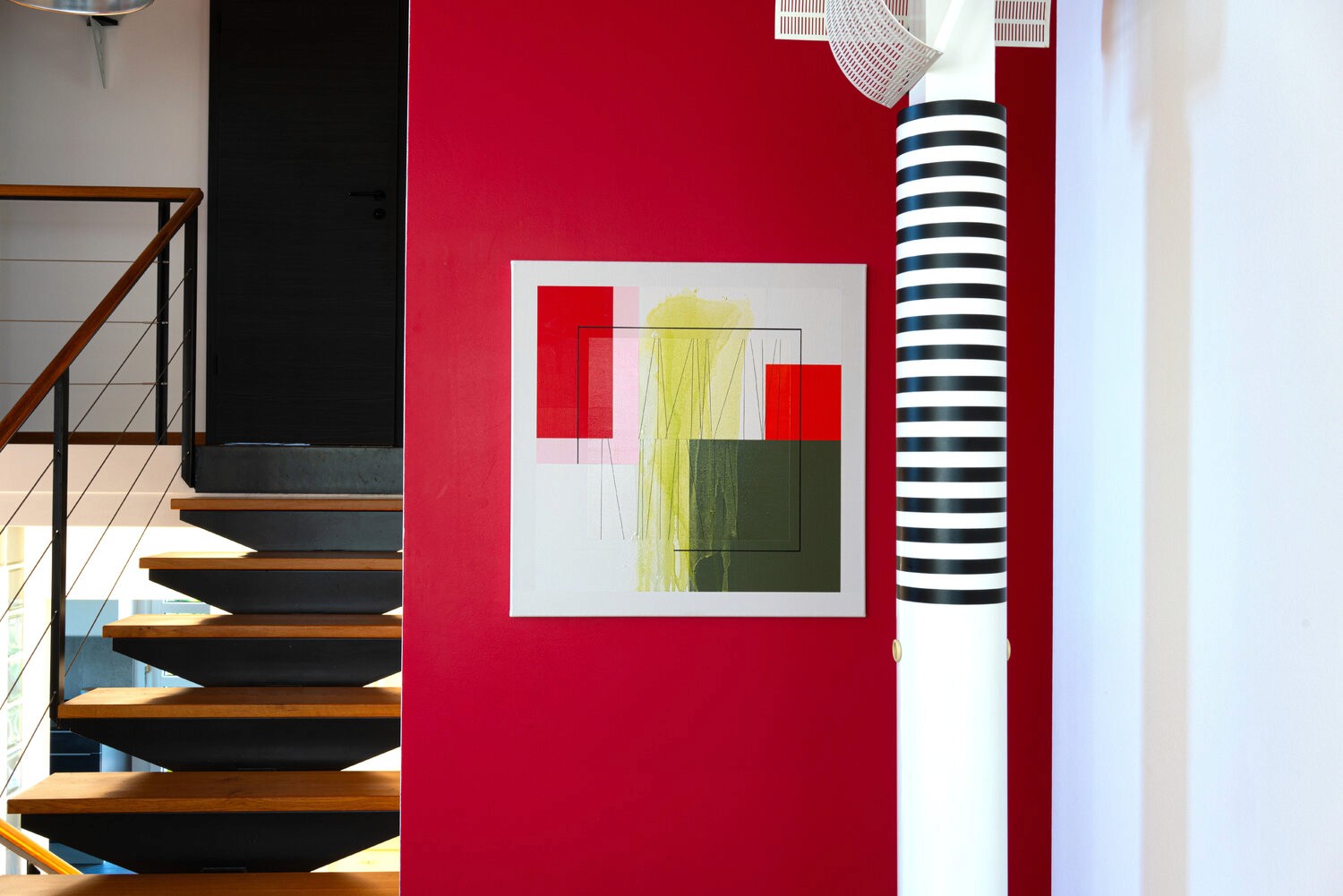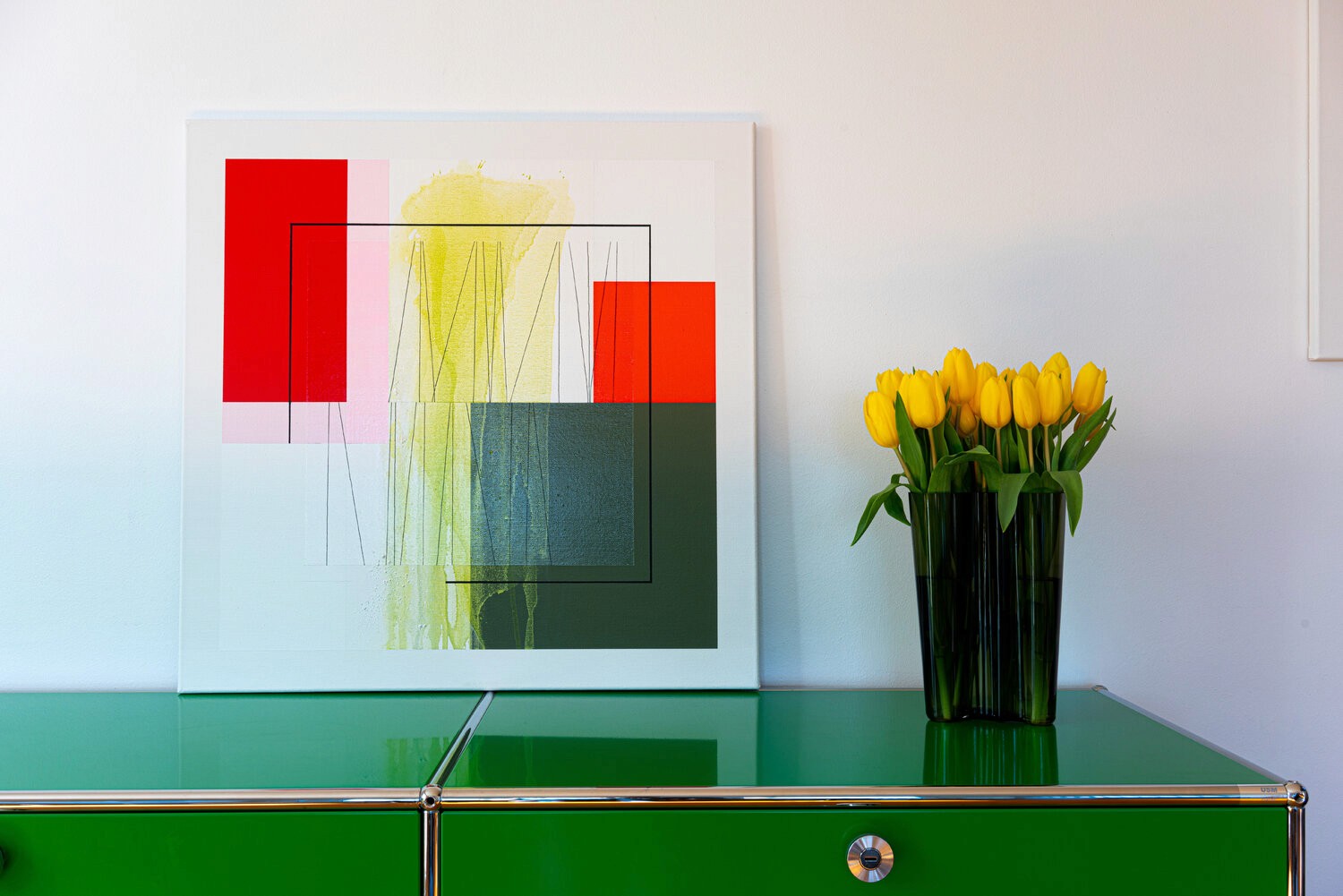 The title of this work refers to my Italian origins. the chromatic composition is a tribute to the Italian flag. When I finished this painting; I didn't have a title yet. But almost immediately; a memory came back to me while looking at the canvas. I saw myself again in Rome; I was an art school student and I was visiting the city with my fiancée who became my wife. I had been fascinated by the orangery of the Villa Borghese; which was a small museum of modern art which displayed a sublime little sculpture by Henri Moore. This Villa dates from the Renaissance; and we could see ancient busts in the magnificent garden. This temporal mixture is so characteristic of Rome! As I finished this painting; I knew I had to connect it to this place!